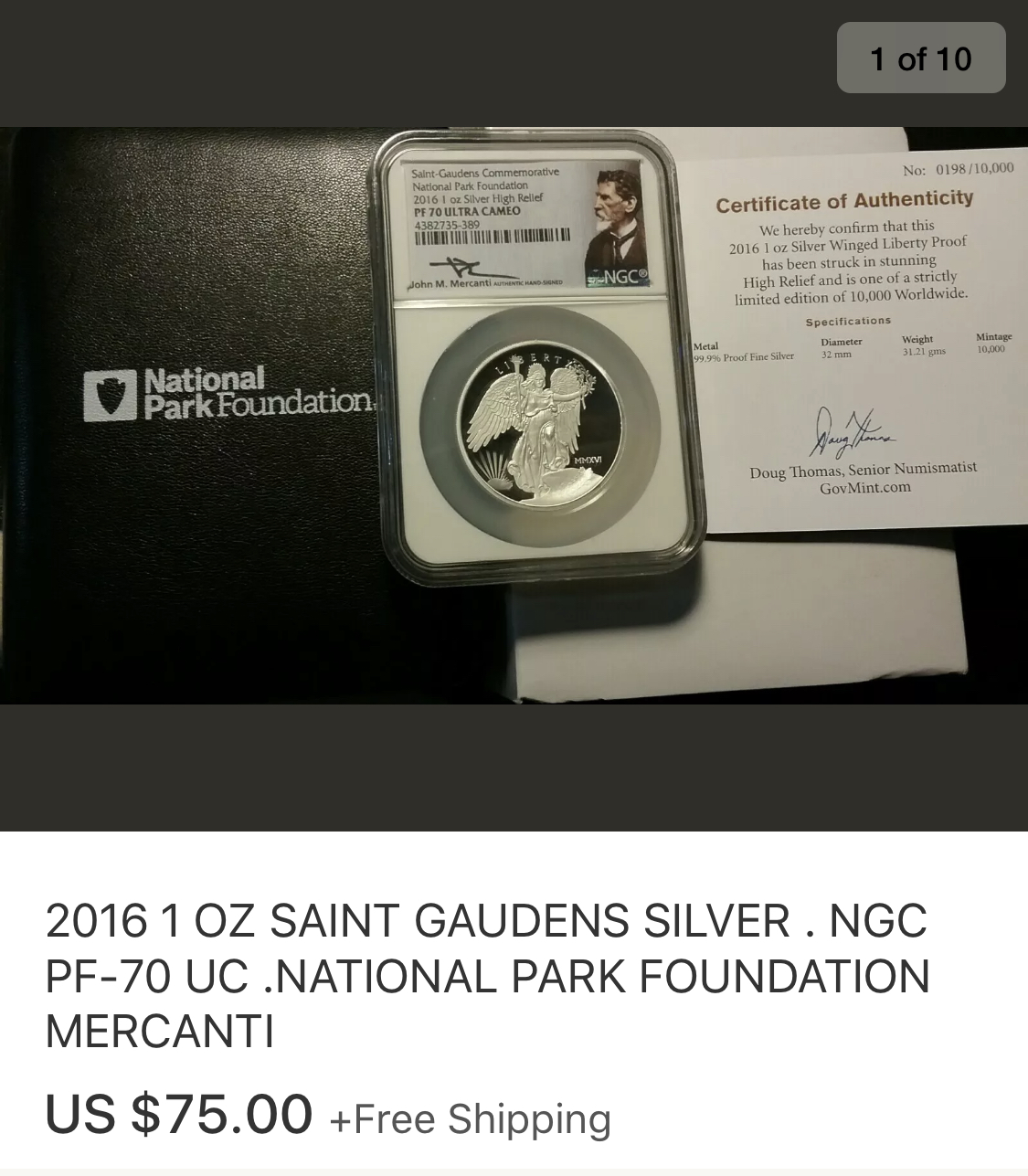 Prices have fallen bigly. I had never seen this piece and wanted if for my collection. I found a PF70 on eBay for $75. I also scored $6 in eBay bucks.