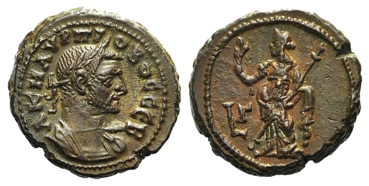 Nice Probus tet! I don't have any Alexandrian coins of this emperor, but here's one that has it all: a radiate crown, a helmet, a cuirass, a shield, a left-facing bust, a scepter, a snake ...