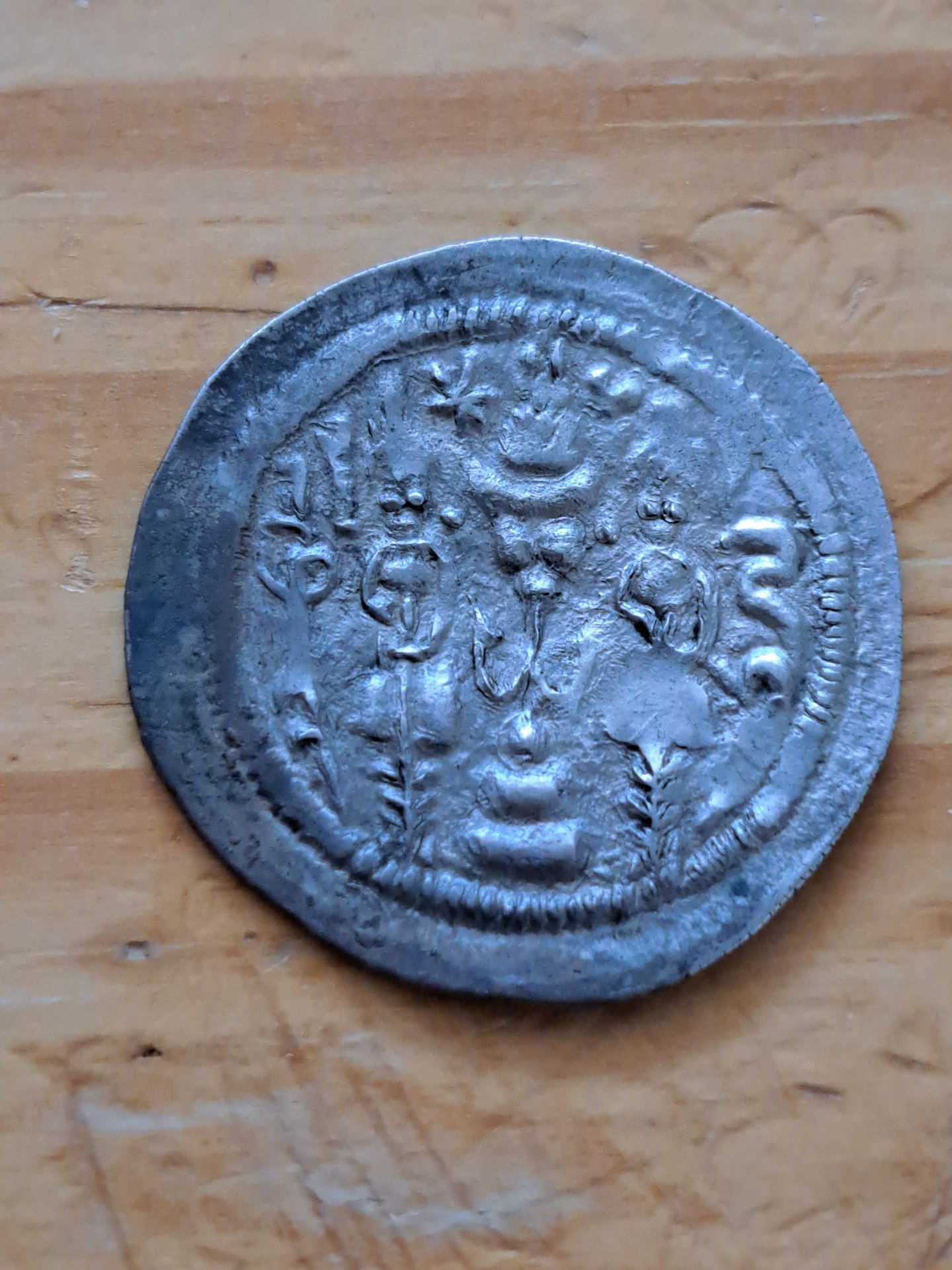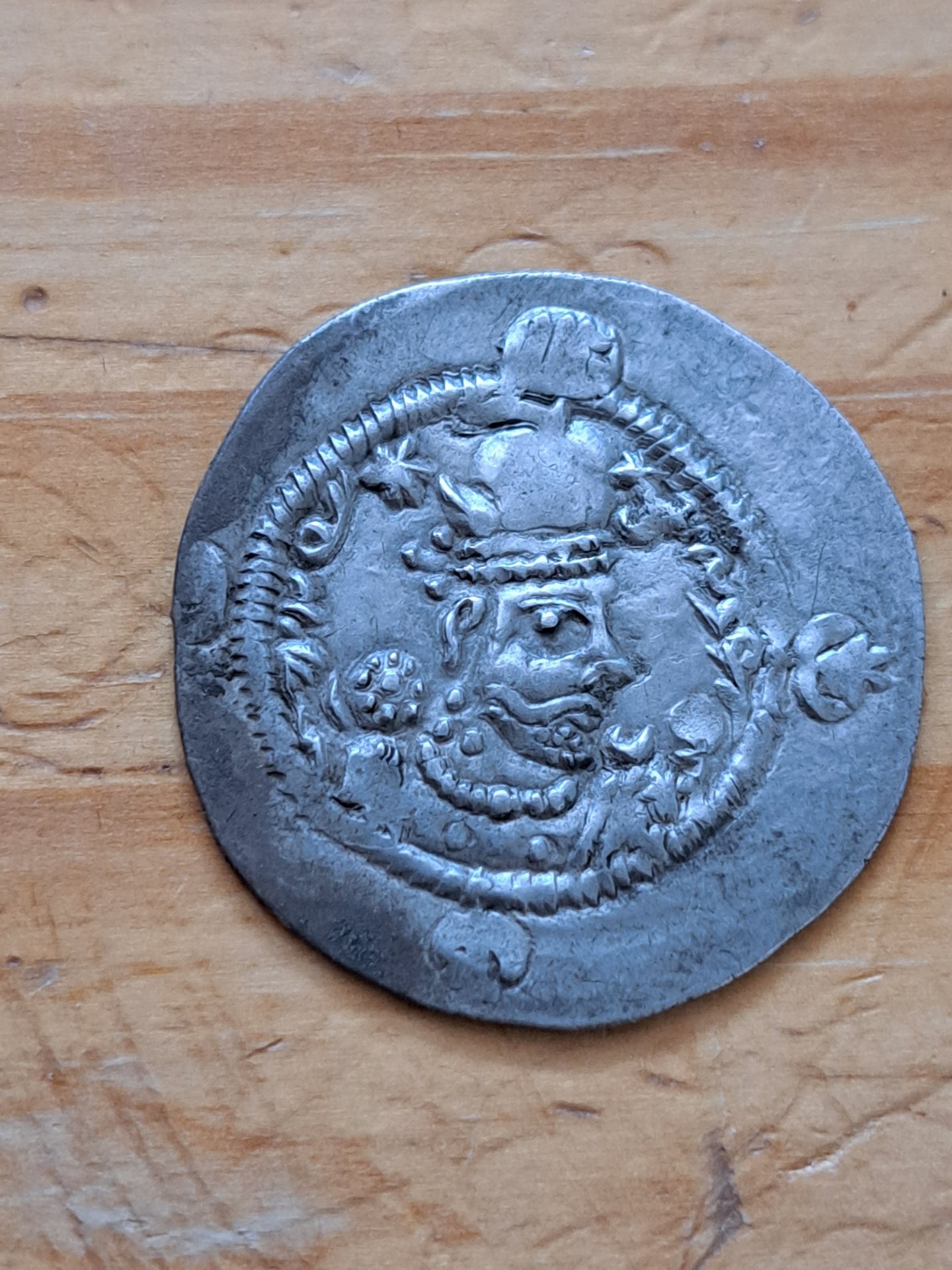 This coin was a Father's day gift from the kids. 4g and 30mm Persian Sasonid AR Drachm, but not sure exactly who it is. Seems to be 6th century, but really not sure the specific ruler. Was trying for a Khusru I, who was such a rival to Justinian. The beard may indicate a different king, but the Khusru II coins seems to have a much more elaborate crown symbol. Details on some of these online seem all over the place. The late Sasonid era is very interesting to me. Any input would be appreciated.
