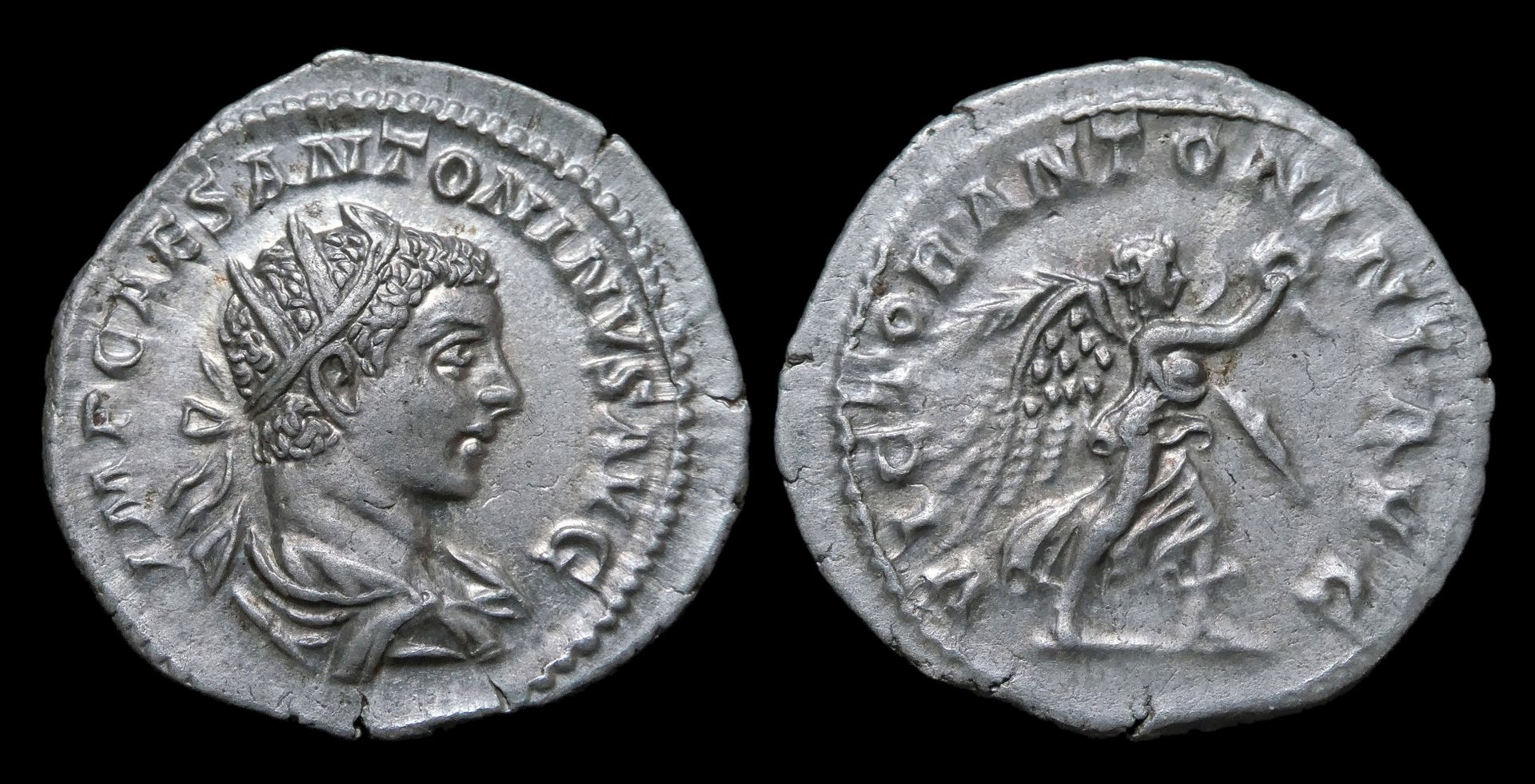 That's a beauty! I'm glad it's getting some attention. Although I have many denari of Caracalla and Elagabalus, I haven't yet been able to find an antoninianus with the right balance of quality and price. That's a very nice depiction of victory there! I love that she's standing on the globe and the detail in her wings. A great coin! I have an ugly but interesting Valerian with this reverse. Similar coins with the same date are of the sliver-ish composition. Mine is 100% (by eyeball) bronze. These are said to be minted by a traveling field mint on the way to the east... where Valerian eventually became a footstool, so some say. I'll see if I can get a pic soon.