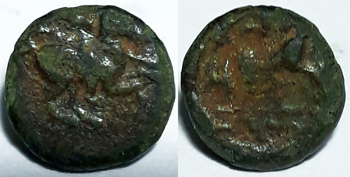 Jonesin’ on that coin, @Clavdivs ! Well done. I have several from Carthaginian Sardinia, yours is a great one! Carthage-Sardinia 300-264 BCE AE Shekel Tanit Horse Head Palm 18mm 4.8g sprues SNG Cop 173 - no pellet below Left Even one from the Mercenary Army when they were royally ticked off with Carthage non-payment, and went to war for 3 years... Carthage - LIBYAN REVOLT Rebels 241-238 BCE 9.63g 24mm Shekel Sardinia mint Tanit 3 Grain ears Crescent SNG Cop 247 Second Punic War. Carthage 216-215 BCE Sardinia mint AE 3.3g Tanit L - BULL stndg R CNP 377a