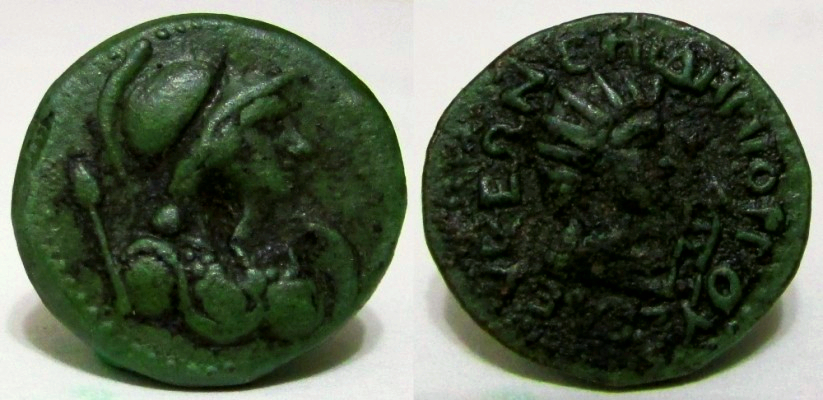 Cilicia, Seleukeia ad Calycadnum. AE18. Athena/Helios Obv: Helmeted and cuirassed bust of Athena r. with shield and spear. Rev: Bust of Helios ? r. / SELEYKEWN EPI DHMIORGOY DHMH. 2nd Century BC-Imperial Times Gordian III. 238-244 AD. AE 29 of Edessa, Mesopotamia. AVTOK M ANT ΓOΡΔIANOC CEB, radiate, draped & cuirassed bust of Gordian III; star before / ABΓAΡOC BACIΛEVC, Bust of Abgar X right, wearing tiara, star in left field.