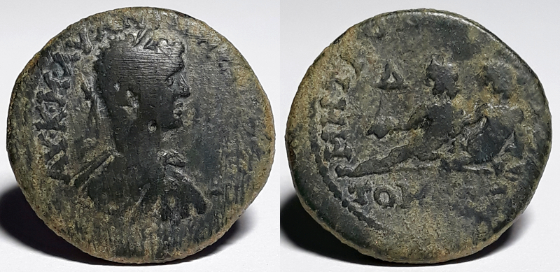 I'm half an hour late to the party, but I don't think I've shown this. I paid like $16 for this "sestertius-sized" provincial coin. I thought it was encrusted from the photos and could benefit from a cleaning. A failed cleaning later, I got absolutely nothing from it. The coin isn't worth the price, and i'll never be able to sell it. Oh well.