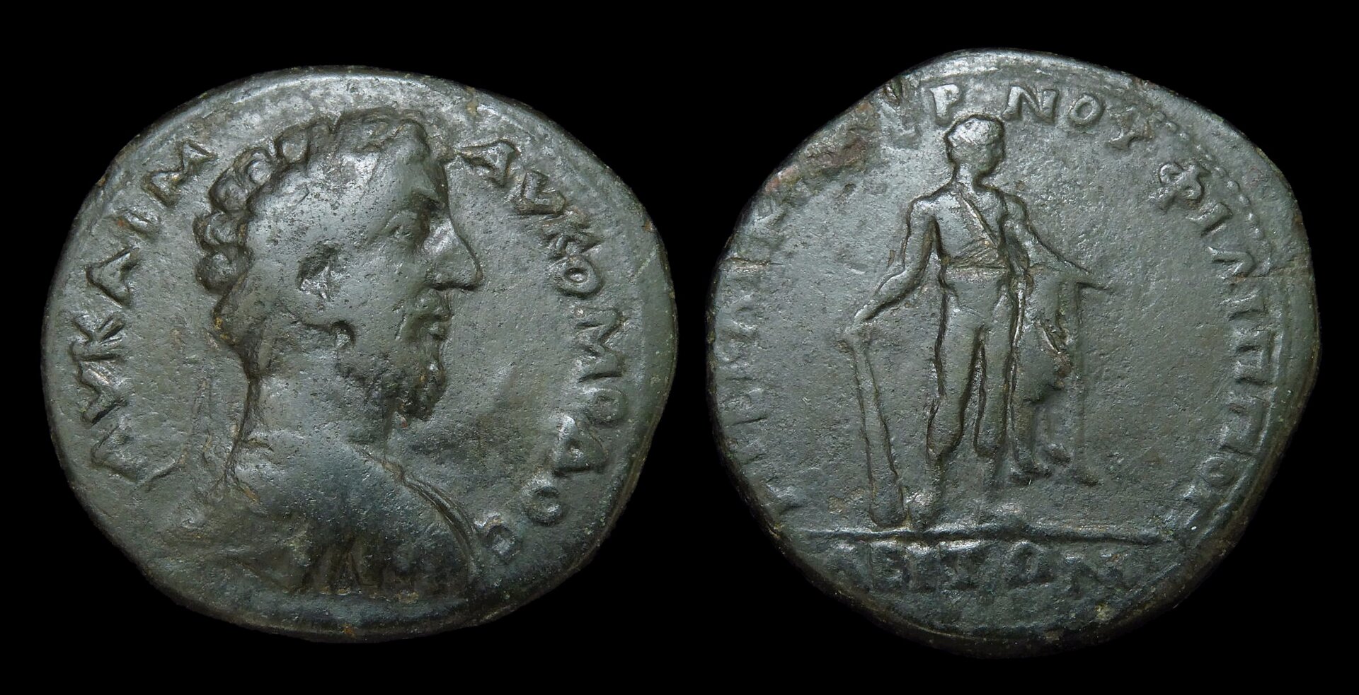 Septimius Severus Ae 27 195-196 AD Tyana Obv Head right laureate. Rv Brahma Bull standing right 13.66 grms 27 mm Photo by W. Hansen What I find really remarkable about this coin is the care and attention to detail in the presentation of the reverse. That bull is magnificent. Sometimes in the striking of provincial coins it is the reverse that gets the most attention not the obverse and this appears to be the case with this coin. That animal is so powerfully drawn you can almost feel its presence