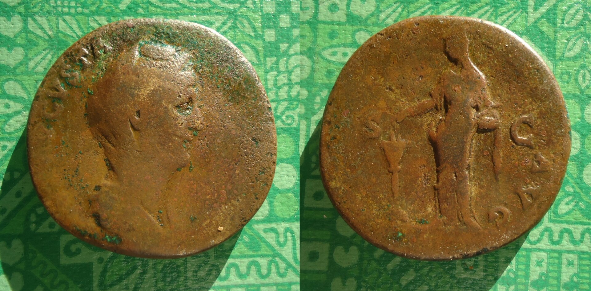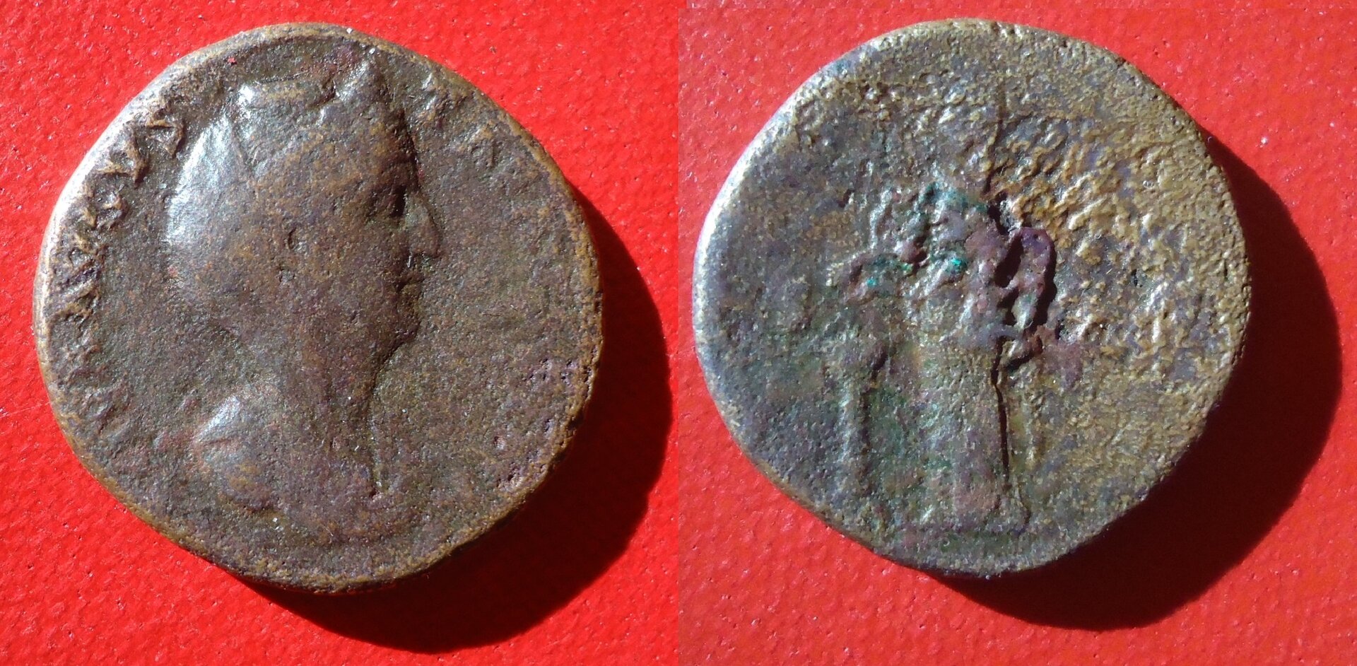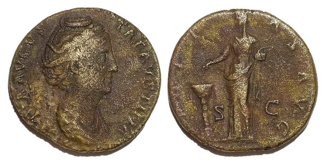This one is a bit mundane for a "Faustina Friday" but it's good for a Saturday night free-for-all. Bought this one at a local show in early May but had to treat it for bronze disease. It is done soaking in distilled water and it appears to be cured. It isn't exactly FDC nor does it have 5/5 surfaces, but it's harder to come by than you might think. It dates from AD 143-145 and was issued in conjunction with the dedication of the Temple to Diva Faustina.