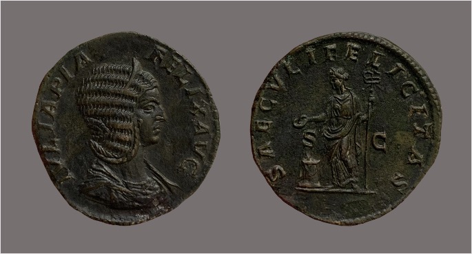 I'm enjoying this sestertius of Herennia Etruscilla I got from @Justin Lee. It was double struck on the reverse, turning "PVDICITIA AVG" into "DICITIA AVG," squishing Pudicitia in the midriff, and giving her a low-rider throne! It features her later hairstyle. Compare it to this one featuring her earlier hairstyle: