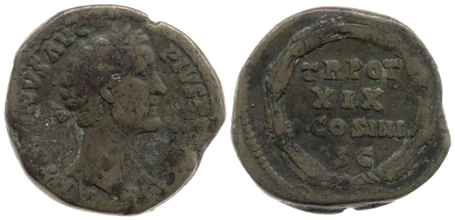 I really like those photos - the details certainly come through and the overall effect is for me somehow dramatic, like an old Hollywood headshot. Anyway, I often prefer "art" to "representative." Too lazy and cheap to invest in equipment beyond an old digital camera and the free light provided by the sun, I keep experimenting in a desultory way. Recently, I tried a couple of backgrounds at different times of day on this sestertius of Antoninus Pius: Antoninus Pius Æ Sestertius (155-156 A.D.) Rome Mint [ANTONI]NVS AVG PIVS PP IMP II, laureate head right / TR POT | XIX | COS IIII | SC in four lines within laurel wreath. RIC 947; BMC 2003; Cohen 998; Sear 4250. (21.71 grams / 30 x 29 mm) eBay Jan. 2022 Ck If anybody out there knows anything behind the issue of this odd "wreath-n-inscription" type for AP, I'd love to hear about it. Maybe everybody at the mint got tired of the goddess-standing-around type, so they just went with some titles? Nothing seems to be celebrated (VOT, etc.), just the usual titles.