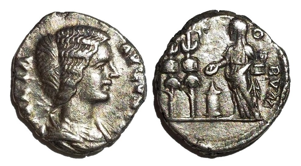 Er, Faustina Jr. called and wanted to know who this Julia person is. She sounds very upset! Faustina II Æ Sestertius (176-180 A.D.) Rome Mint DIVAE FAVSTINAE [PIAE], draped and veiled bust right / [MATRI CASTRO]RV[M] SC below, Faustina II seated l., holding globe w. phoenix and sceptre; two standards in l. field. RIC 1712; Cohen 163. (24.43 grams / 29 mm) eBay Feb. 2019 But seriously, nice Julia D - she's a looker.