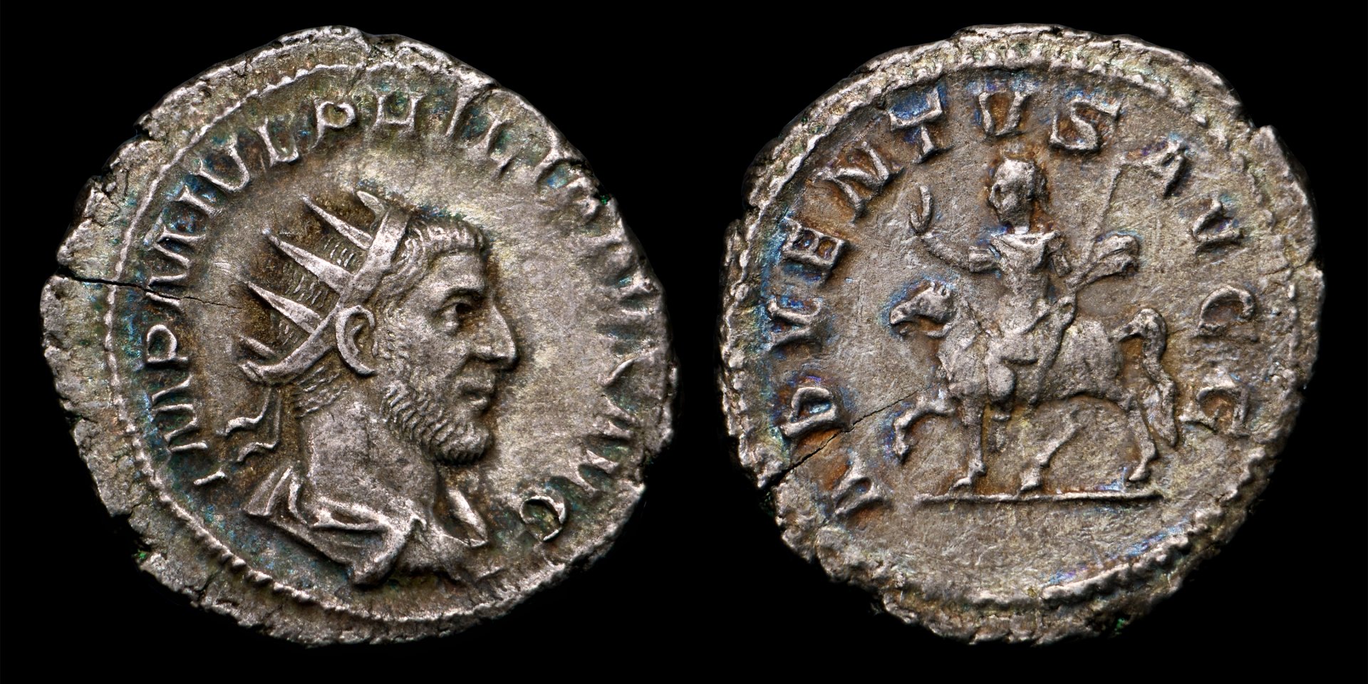 That is a great portrait on that Sestertius. In my opinion Philip I has the best bang for buck when it comes to affordable high-style portraits. After his reign the art of coin portraits starts to degenerate rapidly IMO. My favorite Philip coin has a solid portrait and type but is really interesting for the provenance. Roman Empire Philip I the Arab (AD 244-249) AR Antoninianus, Rome mint, struck ca. AD 245 Dia.: 23 mm Wt.: 4.36 g Obv.: IMP M IVL PHILIPPVS AVG; Radiate, draped and cuirassed bust right Rev.: ADVENTVS AVGG; Philip on horseback left, raising right hand and holding spear Ref.: RIC IV 26b Ex David Kallai (ca. 1908-1924) with old tag; Ex arnoldoe Collection, AMCC 2, lot 194 (Nov. 9, 2019). I have bought a few D. Kallai catalogs hoping to decode the way the numbering scheme on the tag worked but I still haven’t figured it out. I’m not sure what the 94 and 76 stood for. I’ve seen other tags where the number in blue has been crossed out and another number written. I’ve been meaning to make a FORVM post asking for help but I haven’t gotten around to it yet. Either way there is a lot of story behind this provenance but it’s a sad one.