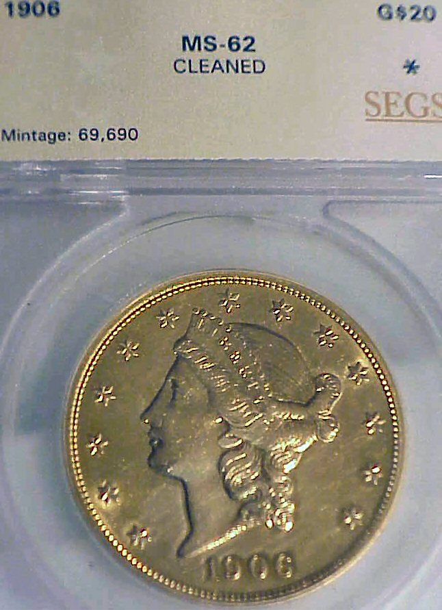 There were only 3 twentieth century key dates in this series of Double Eagle coins. A coin of which you generally will not find on eBay at a competitive price, and believed hardly sold in Heritage auctions. Both the Obverse and Reverse have virtually flawless "cart-wheel" , Proof-like fields without any "hairlines". The reverse has the virtually Gem condition of a MS64 coin, and appears to have not been "cleaned". The reverse should have been masked, and the Obverse "dipped", but the lack of contrast between the field and devices, the shadows around some stars indicates a possible "cleaning". The following CAC certified comparable coin may be reflective of the condition in which this relatively awesome coin could have been found: fhttp://www.ebay.com/itm/1904-20-NGC-MS62-Prooflike-CAC-Liberty-Double-Eagle-/222068241703?hash=item33b44c7527:g:UeoAAOSwAvJW-g4e I believe a "sight-seen" viewing will find this coin generally having superior presentation to the specimen located in this past comparable auction: http://coins.ha.com/itm/liberty-double-eagles/1906-20-ms62-ngc/a/1211-4137.s Return privileges allowed. Any Interest - Make Offer