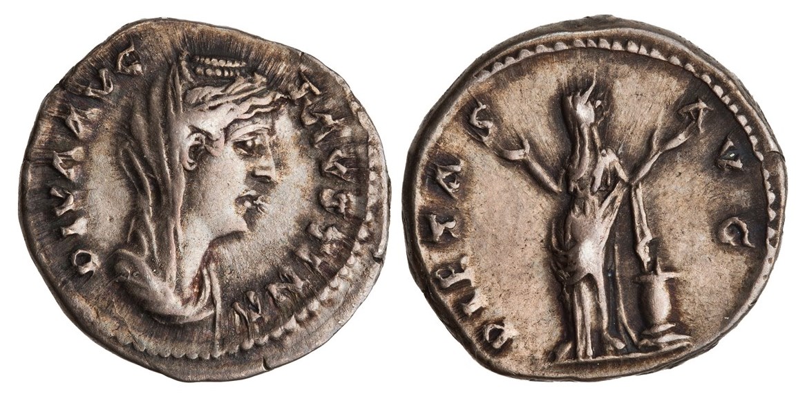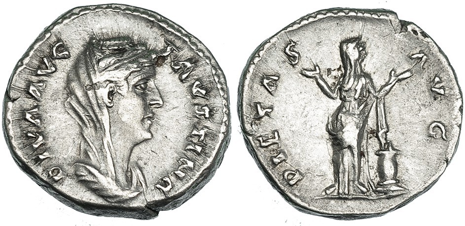 Post anything you feel is relevant! This particular issue of Faustina I, depicting Pietas with her hands upturned in supplication, is scarce. While a handful of museum collections have an example of this coin,[1] no examples are to be found at acsearchinfo or Wildwinds. Pietas was a common motif on the coins issued for this empress. She appears on coins with the DIVA AVG FAVSTINA as well as DIVA FAVSTINA obverse inscriptions, with bare-headed and veiled busts, and with various reverse inscriptions, such as AVGVSTA, PIETAS AVG, and PIETAS AVGVST. She appears right-facing and left facing, raising both hands, or left-facing and holding her hand over a lighted altar or candelabrum with her right hand and holding a box of incense in her left or holding the left hand at her breast.[2] Many of these varieties are scarce to rare. Dating is uncertain. The ANS dates the coin to AD 141, whereas Dinsdale (p. 215; @paulus_dinius ) notes a die-linkage of one of the PIETAS types to a COS III aureus of Antoninus Pius, establishing a possible date of AD 143-145, corresponding to the second phase of issues for the empress to commemorate the dedication of the temple to Diva Faustina. Faustina I, AD 138-141. Roman AR denarius. Rome, AD 141-145. Obv: DIVA AVG FAVSTINA, bust of Faustina I, veiled and draped, right. Rev: PIETAS AVG, Pietas, veiled and draped, standing facing, head right, by lighted altar, raising both hands. Refs: RIC 392; BMCRE 308; RSC 251b; Strack 430; RCV --; CRE 109; Dinsdale 019460. Notes: Double die-match to ANS 1941.131.831. Here is the ANS specimen for comparison: ~~~ 1. The British Museum, the Staatliches Münzkabinett in Munich, the Staatliches Münzkabinett in Vienna, the Nationalmuseum in Rome, and the American Numismatic Society. 2. RSC 124, 124a, 234, 234a, 234b, 236, 237, 251, 251a, 251b.