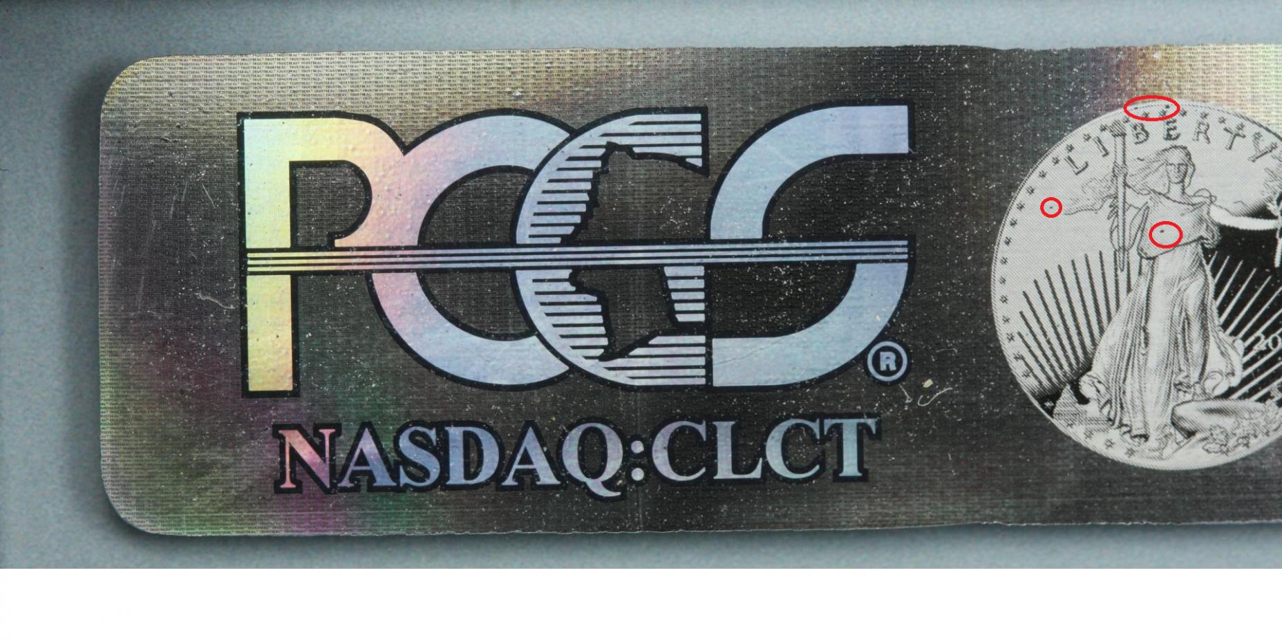 On all the slabs in my shop that I have checked none have these dark spots on the St.gaudens part of the hologram. Im surprised that they got the small 'trust seal" lettering to show up well but couldnt get the ink sharpness on the barcode.