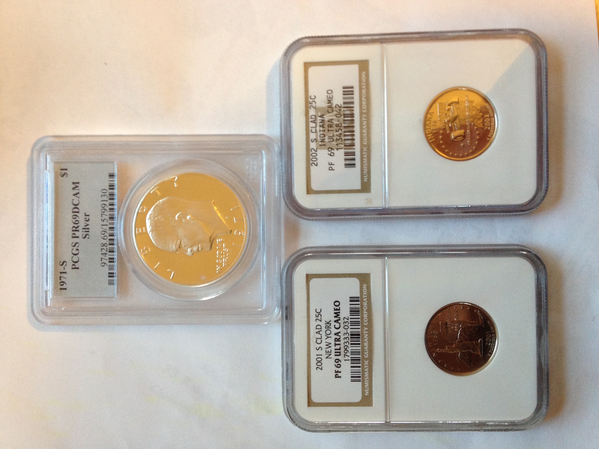 PEER PRESSURE!! Also, its the kitties. Dogs are man's best friend. Kitties... not so much. In other news, my camera is currently AWOL but the goodies were as follows: 1964 Kennedy in a PCGS 7 MS slab. 2006 $5 Liberty Dollar. : D 2013 P/D Kennedy Halves.