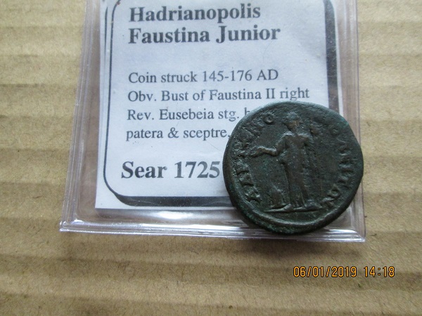 Well, as the saying goes " Better late than never " Firstly, my apologies to my Secret Saturnalia partner for taking so long to post. My 2018 didn't end well and I have only just started to get back to some form of normality. I waited until New Years day to open my gift ( also my b'day ) & was most pleased to find 2 coins already with full I.D A Favstina Sr Denarius & a Provincial of her daughter from Hadrianopolis Many thanks to ( James from Denver ) who's identity still remains unknown for making 2019 start with a smile