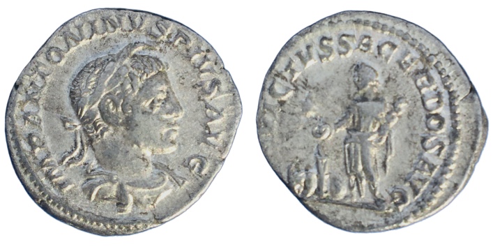 Reverse: INVICTVS SACERDOS AVG / * | -. (The Invincible Priest of the Emperor).