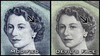 It's there on all denominations of the original 1954 notes, though they reprinted them shortly thereafter once it was in the news that the devil was in her hair. So the vast majority of 1954 notes are the newer ones that do not have the devil's hair.