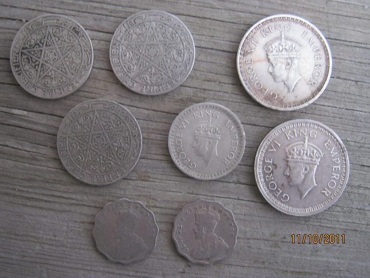 I know that the Rupees are 50% silver. Not finding much info on the others, or what all of them are worth more or less. The odd-shaped coins are dated 1936 & 1919 ..Thanks .. Dave