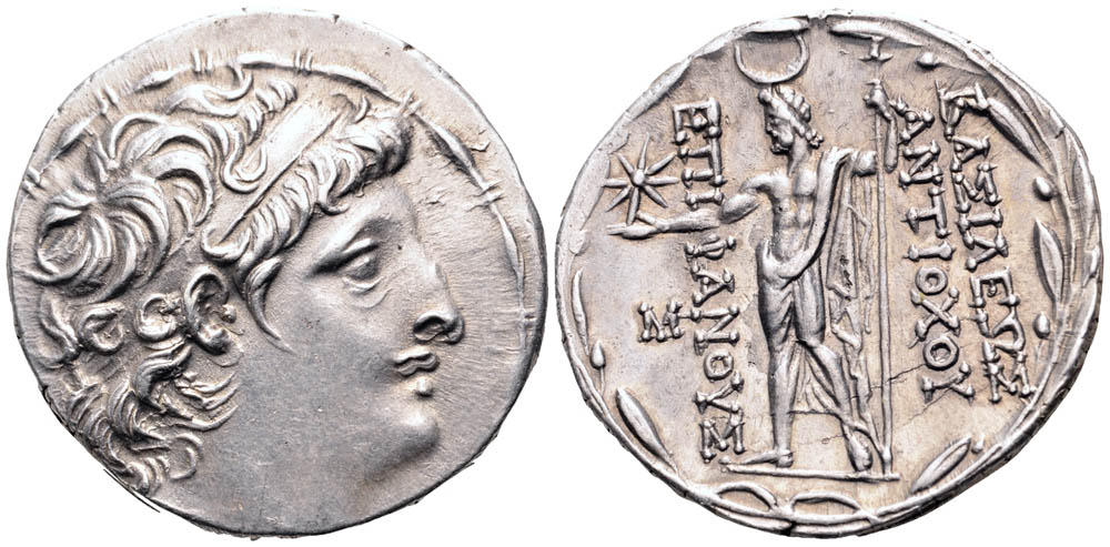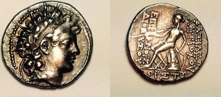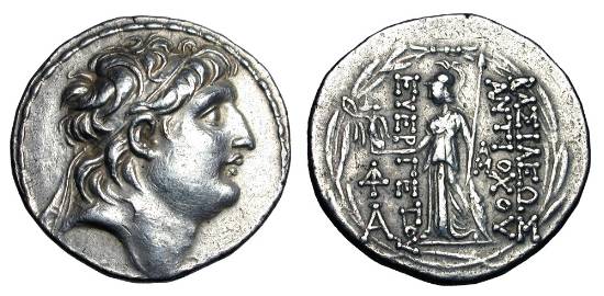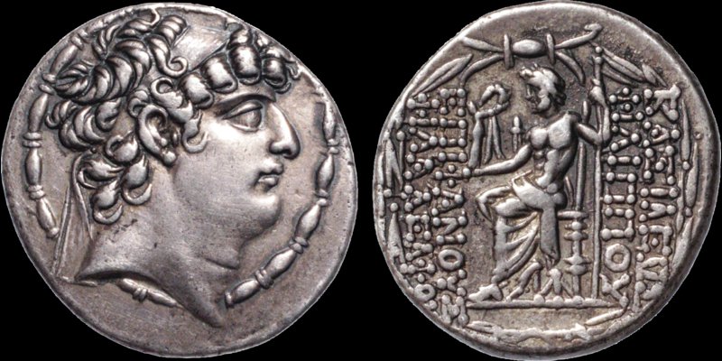 I need a confirmation that I have the proper attribution on this coin (all these guys look alike to me). Seleukid Kings of Syria, Alexander II Zabinas AR Tetradrachm. Antioch, 128-122 BC. Diademed head of Alexander right within fillet border / ΒΑΣΙΛΕΩΣ AΛEΞANΔPOV, Zeus Nikephoros seated left, holding Nike and sceptre; monogram to outer left, AI below throne. SC 2219.2. 16.56g, 30mm, 12h.