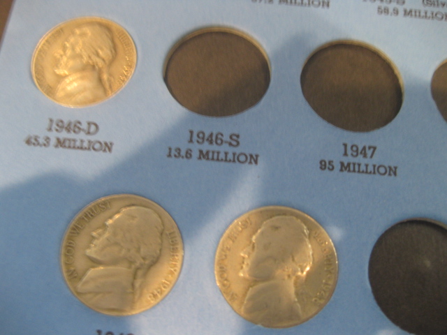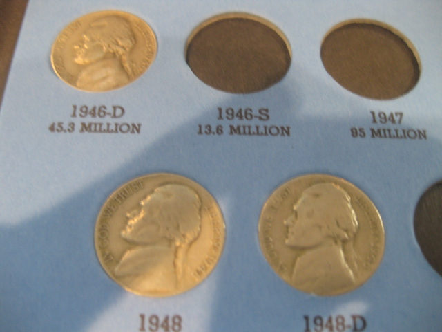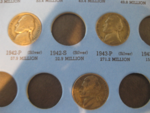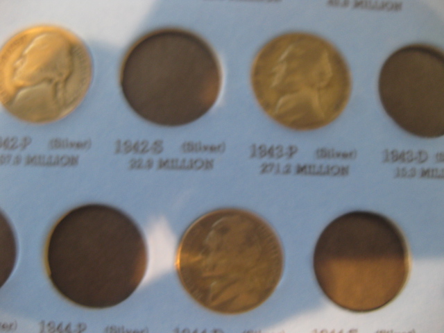 this set includes: nickels: 1 1902 1 1934 1 1941 1 19941-s 1 1942-p (silver) 1 1943-p (silver) 1 1944-d (silver) 1 1946-d 1 1947-s 1 1948 1 1948-d 1 1949 1 1952-d 1 1953-d 1 1954-d 1 1957-d 1 1958-d 1 1959-d 1 1960-d 1 1961-d cents: 7 rolls copper cents (including one steel hidden inside one of them, and one wheat cent per roll.) 1 roll of 2010-2013 cents foreign coins: 1 Chinese 50 yen 1 Canadian 1968 nickel quarter no mint mark 1 Canadian 1976 cent no mint mark notes: 1 2006 triple 7 from S.F. 1 2006 6666 $20 from g7 ancients: 1 roman coin. pics soon!