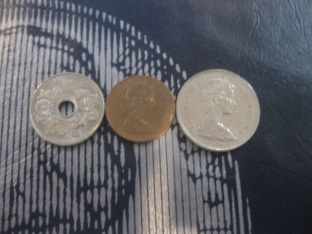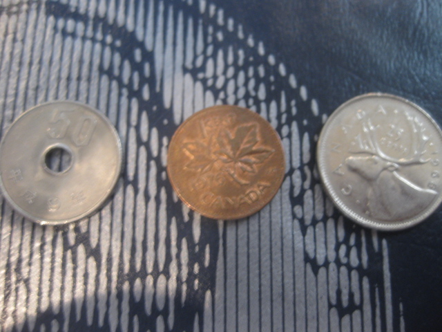 Regular nickels - Face Value War nickels - Melt minus 10% Copper cents - 2 cents each to the right buyer 50 yen - 51 cents Both notes - face value roman coin - $2