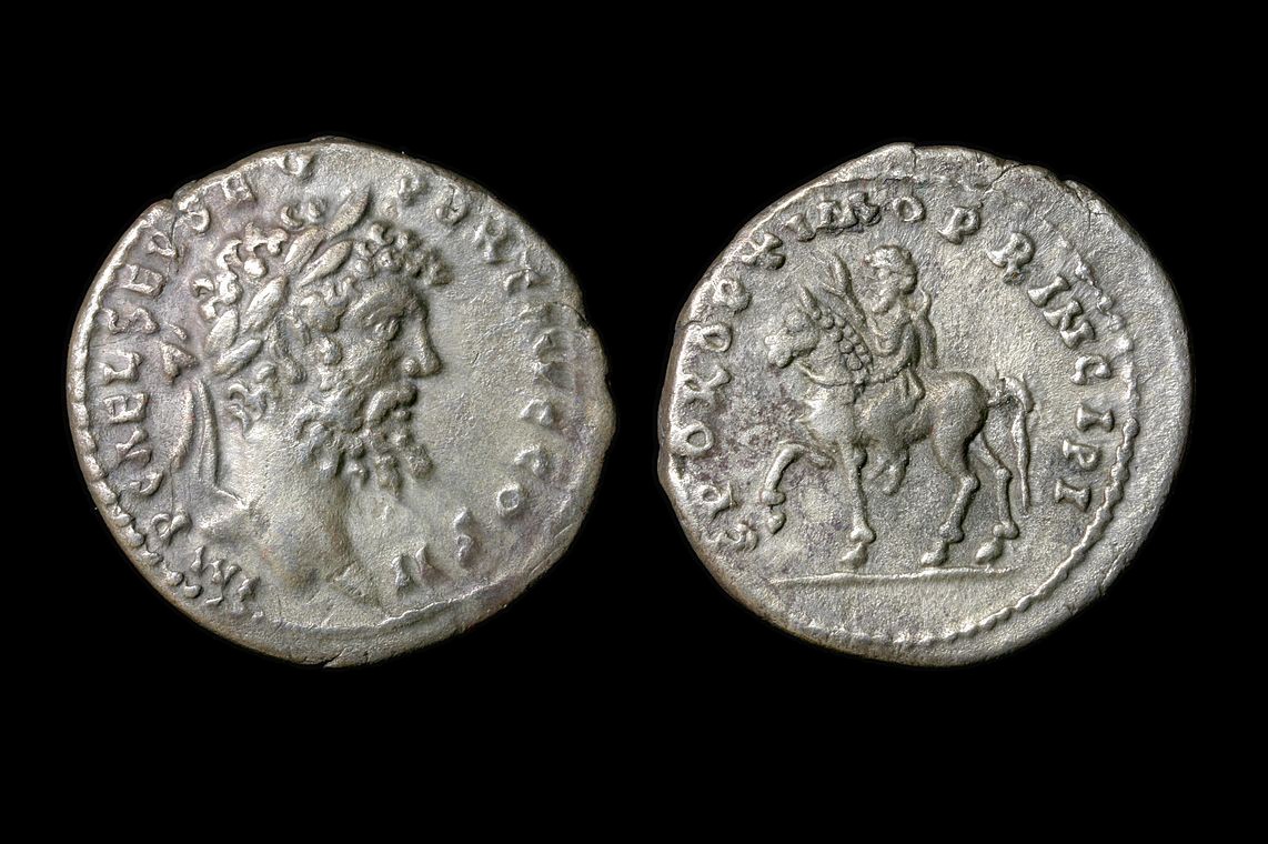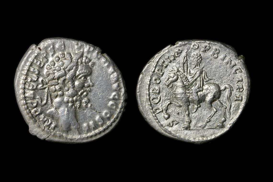 The adventus coin was minted when Severus came back from Gaul where he had crushed his opponent Albinus and was acclaimed Imperator for the 8th time in 196. After some time in Rome where he strengthened his regime and condemned senators who had sided with Albinus, he motivated his army probably by granting them some donativum (hence his 9th imperatorial acclamation) and left again for the East in 197, embarking in Brindisi and sailing directly to Syria (cf. Historia Augusta) to invade Mesopotamia. This departure is advertised by the profectio coin.