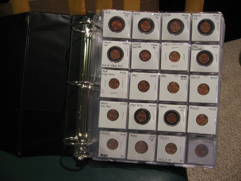 This was posted by CT member BadThad, but on another forum...I think I'm going to model my storage/display on this: "I use multi-layer protection: 1) AirTite 2) AirTite goes into a 2x2 (mainly so I can label it) 3) The 2x2 then goes into Cowans 2x2 sheets 4) Sheets go into a 3-ring binder 5) Binder goes into a huge ziplock bag with a giant desiccant pack 6) Whole thing goes into a tupperware type container Note that some coins in this old pic are not in AirTites. I'm planning on replacing those with better coins. Only the "keep forever" coins go into airtites. I also bought a little Brother P-touch label maker a few months ago so many of 2x2's are labeled with that. I also intentionally leave gaps on the pages so I can add. For most years/mints I have 2 or more examples (not shown) for various reasons, i.e. toned, woody, variety, error, etc."