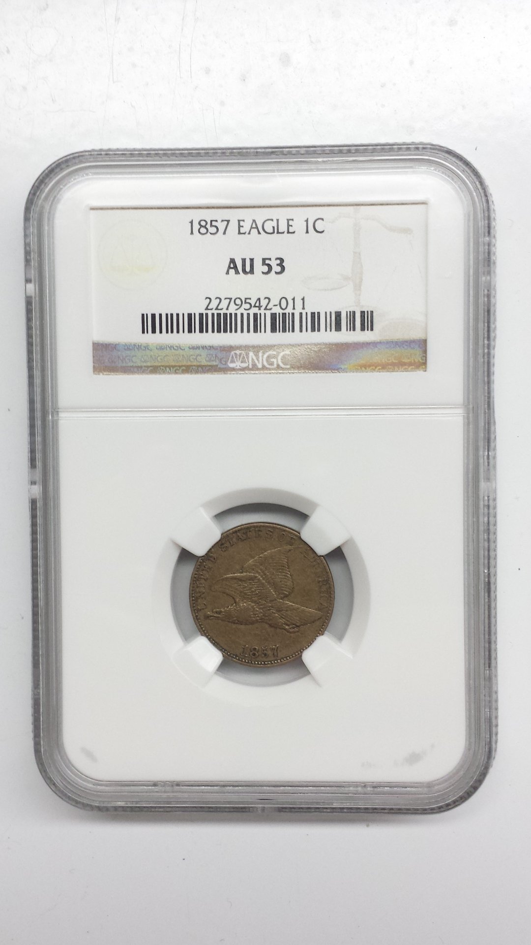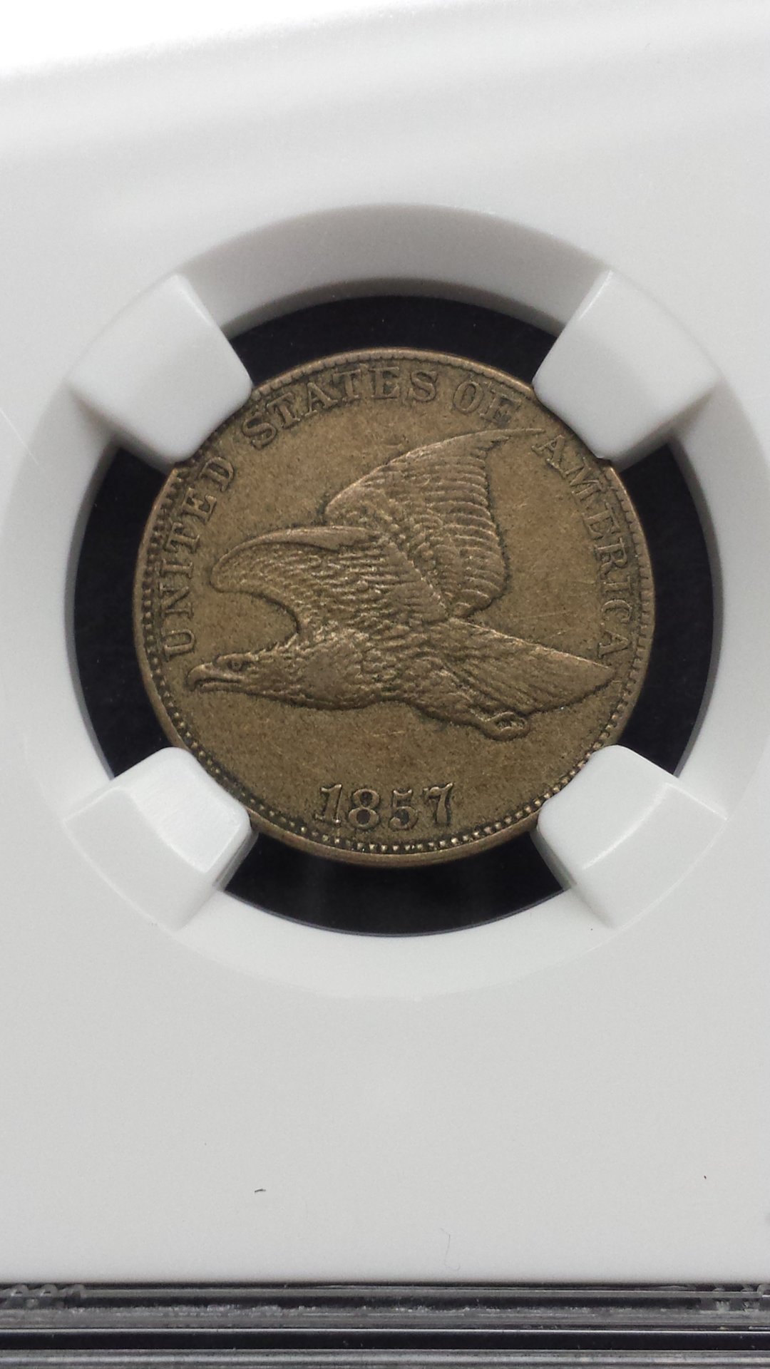 I own this 1857 Flying Eagle graded by NGC. Last year, I was in buying mode and was the buying slabs and not the coins. I have started weeding out these coins that I now see are not up to par. My question is, do you think this coin should have received a details grade for the large, distracting scratch on the back? I have seen some with details grades with much smaller scratches. I threw it on the Bay to see if I can move it since I just purchased a CAC approved one.
