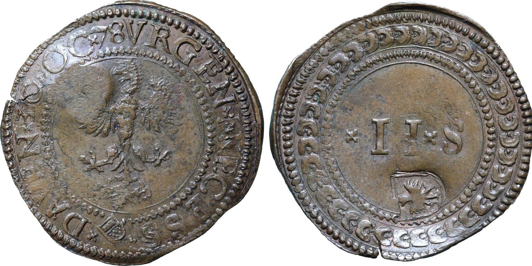 Belgium (Liège, Chapter of St. Lambert): copper méreau or communion token; memento mori, 1686