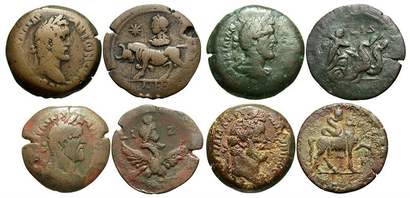 There are so many great sub-$200 coins here. Seriously... nice stuff, everyone. I'm having trouble with the word "best", so I'll just show a few favorites.. In my records, I have the cost of this Otho down as $180 shipped. However, it came from a group lot, and the cost recorded is proportionate to the value I assigned it relative to the values assigned to other coins in the lot. In other words, I may be the only who considers that it cost me $180 . This Eion trihemiobol was the favorite sub-$200 coin in my Top 10 of 2016 list. It was $125 shipped. And to give some space to recent favorites, here's one I haven't shown before. It's a Geta provincial from Hadrianopolis with a Hercules-clubbing-the-Lernaean-Hydra reverse. It was won at auction for $185 shipped. I've not yet received it, so these are the seller's pics.