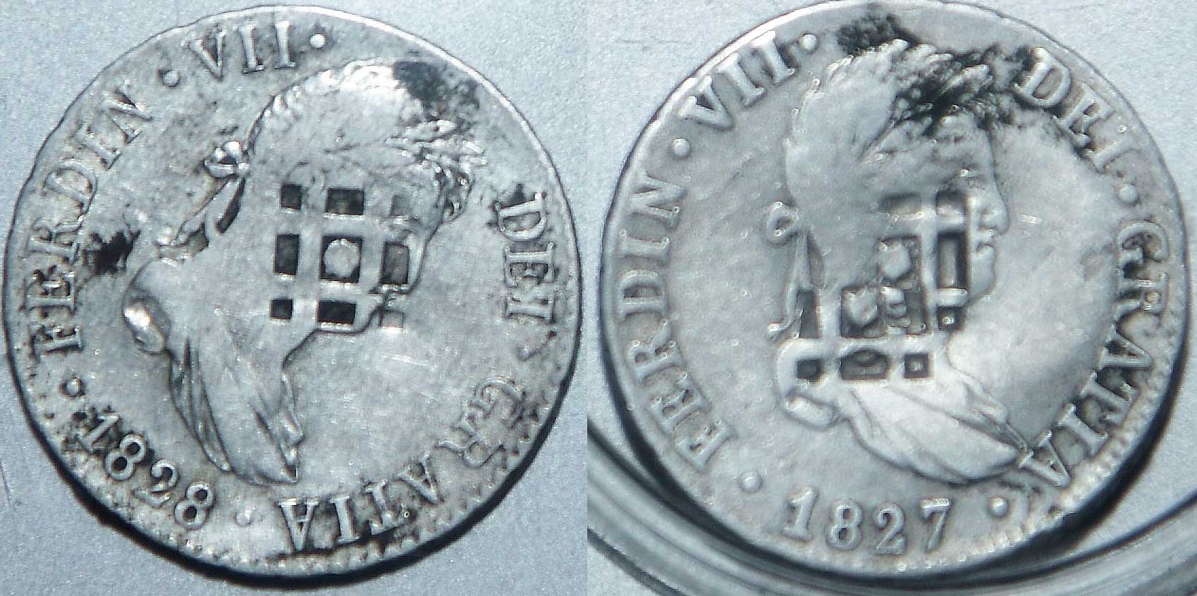 Double Counter-marked 2 reales for use in cuba Coin on left is normal single mark - - Anyone ever see this before?