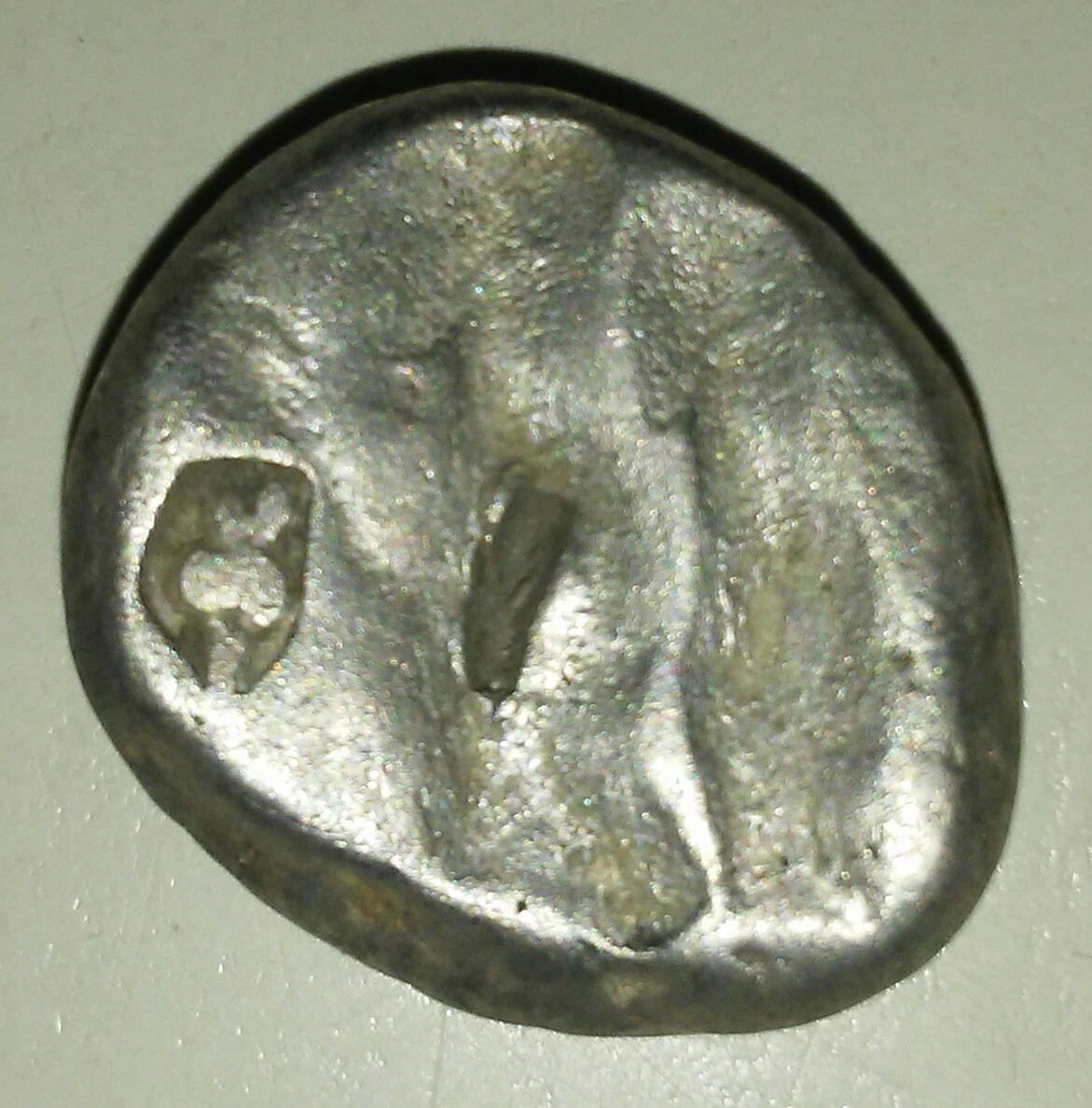I was just thumbing through some of my old Persian coins (ok, my 2 Persian coins) and I'd noticed before my Siglos of The Great King with bow and dagger has what i believe are some test marks and low and behold I just spotted a saweet lil countermark on the reverse! Check it out... So far I'm stumped as to what the image might be. I've been scrolling through Google images for a bit and (wishful thinking) the closest thing so far is an owl. Anyone want to take a stab at it? (BaBoom! Pun fully intended...the great king has a blade..cmon. If I have to explain it it's not as funny). But seriously, any ideas?