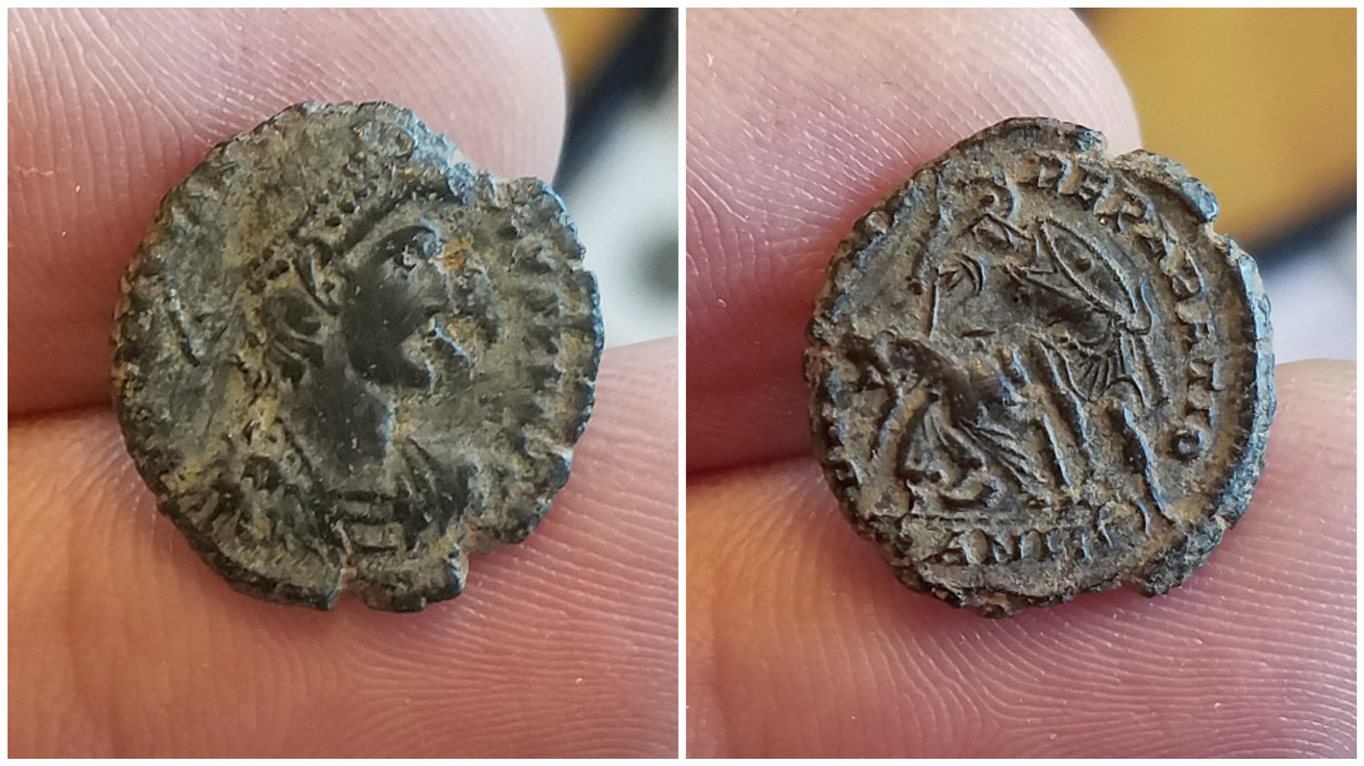 Thanks, Doug! Yeah, these are tough little guys, especially with any legend to speak of. I wish I understood them better. There are issues with long form legends and well-engraved wreaths, others where the obverse is clearly anepigraphic and the wreath like mine (circle or dotted circle), and then those like mine with partial legends. Sear says Antioch issues typically have partial legends, but he also says they have an exergual mint mark (also Nicomedia). I'm not sure I've ever seen one with a mint mark... have you? Most dealers seem to attribute all of these to Constantinople, but I doubt that's correct. Plus there are Vandal issues to complicate things further. If anyone can shed some light on all this I'd be most grateful!