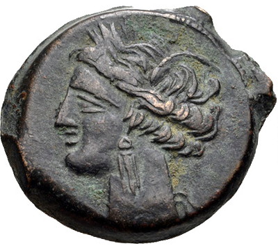 This is actually an issue of Entella in Sicily, while the city was under Punic control. I don't know what it means (presumably just the name of the city) but the letters under are MHSBM.