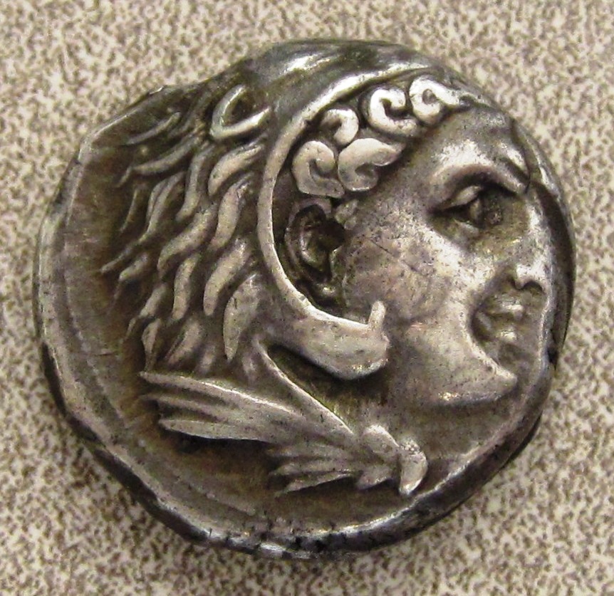 SICULO PUNIC Sicily 300-289 B.C. AR Tetradrachm 16.72 grams, 23 mm Obv: Head of Hercules in lion skin Rev: Horse head with date palm tree behind & MHSBM in exergue Grade: ??? Here is the last (and obviously the best) of my four coins from the Westchester coin show. Perhaps at one time this coin was paid to a mercenary that fought for Carthage. Of course, that Carthaginian mercenary is gone now.