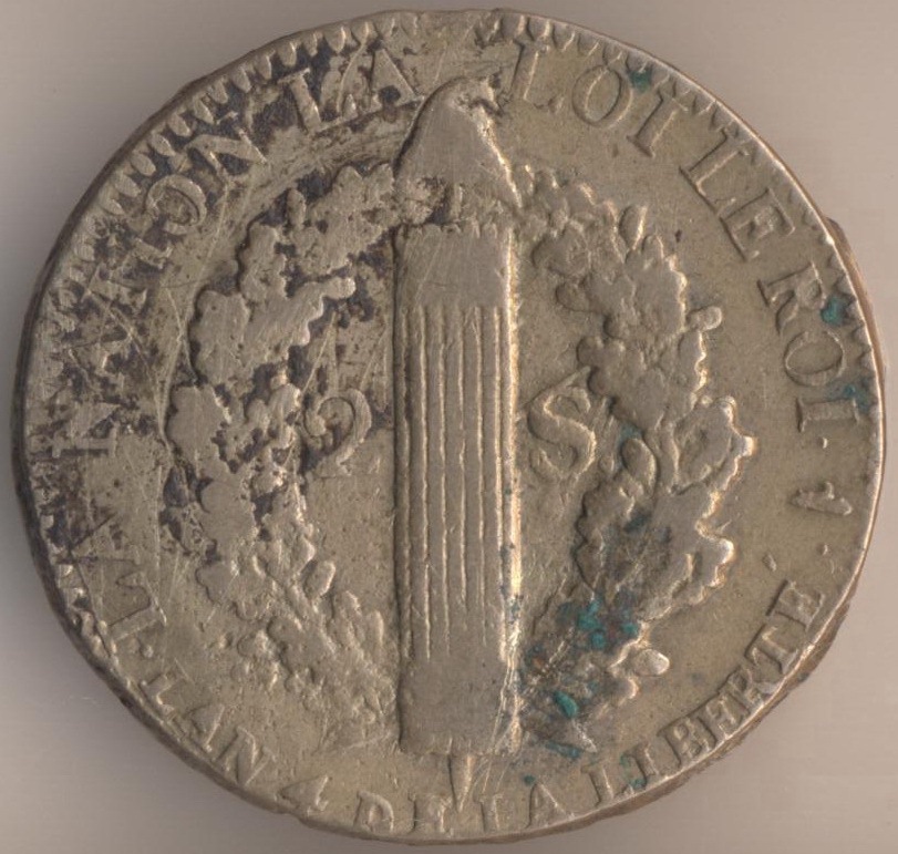 1792 Ecu 6 Livres silver crown (Limones mint) 1793 Ecu 6 Livres silver crown (Paris mint) 1792 Monnerron Brothers revolutionary credit token. Die error. The French Revolution is perhaps one of history's most significant events and left a lasting impact on Europe and the world. Since many of us here would have studied about it before I would not dwell too much into its details but rather the relationships between these coins and the revolution. 1792 is the year when King Louis XVI was captured and incarcerated. He was executed on January 1793 soon followed by his wife Marie Antoinette the same year. These coins were minted coinciding with both events and were the last 2 silver ecu crowns to bear the monarch's profile. although official mintage figures were unclear, given Louis' execution so early during the year, it would be assumed that 1793 bearing his profile would be significantly scarcer. As for the Monnerron token, these were issued during the height of the revolution where economic breakdown forced the government to issue paper notes known as assignats to control the flow of actual currencies in circulation. However they proved vastly unpopular leading private companies such as the Monnerron Brothers , a Parisian bank, to issue copper tokens as guarantees. This token was designed by the leading engraver of the time Dupre and carries a guarantee of 5 sols. Needless to say their popularity meant that many specimens were heavily circulated and thus poorly preserved. Unfortunately hyperinflation also meant that the cost of these tokens outweighed their intrinsic value and therefore with their eventual collapse, so did their issuance ceased.