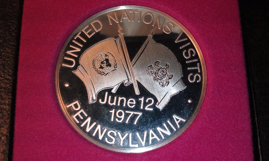 First,I have 2 identical 1oz .999 silver bars- next I have this sterling silver medal- i don't know much about it except that it is from the Franklin Mint,and it weighs 50.3 grams. I thought that I would offer them here for trade rather then list them on fee-bay and spend the money on coins anyway! I will consider any coin/currency and related items of similar value for trade,just pm me with what you have.--Dennis