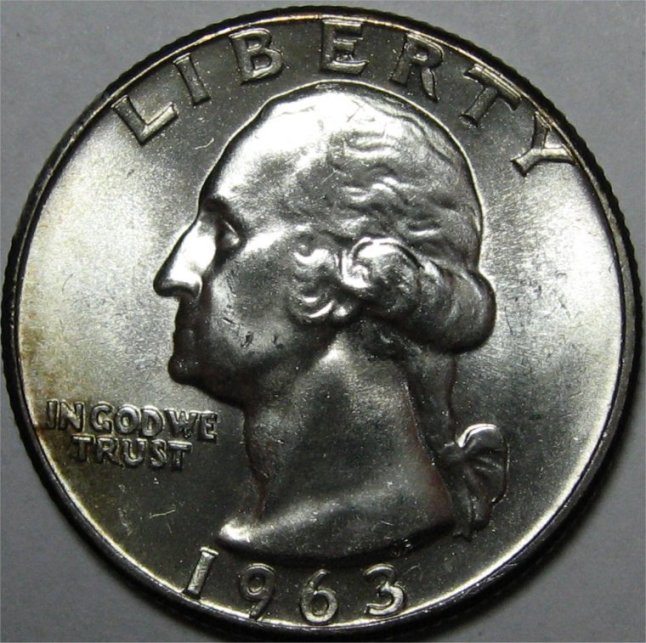 1963 Washington Quarter - BLAZING luster! Compare to a "normal" quarter from the same collection. Just a small hint of toning on the obverse shows it's never been dipped. SUPER NICE IN HAND! $19 FREE SHIPPING