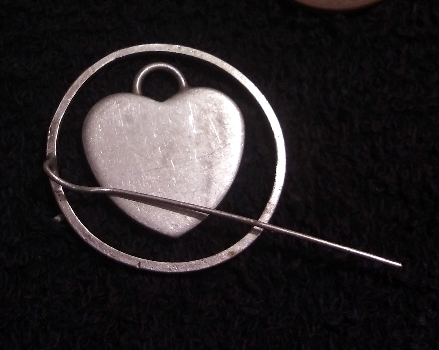 I would guess that the Sterling item on top is a shoe buckle. Maybe from a military dress uniform shoe.