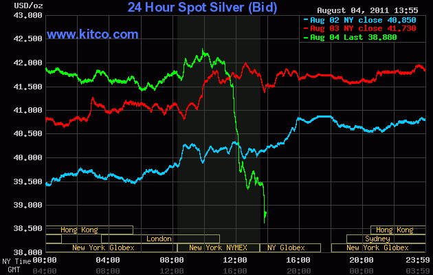 There was a stealth Margin Hike yesterday and probably more attackes today! READ... So a Margin strike and then immediate plunge in silver the next day. :devil: You do the math! Hang in there brothers and sisters, be patient and wait em out. I'm sure the banksters are fuming that they can't hold down metals as expected, following dept ceiling agreement, etc so they got to revert back to dirty tactics again, exposing themselves. :yes:[h=2]Currency Wars & Another “Drive-By-Shooting”[/h] August 5, 2011 CK.Diong Leave a comment The world watches as… US raised its debt ceiling – more borrowing, more printing Swiss National Bank flooded its money markets as it tried to weaken the currency Japan intervened in the currency markets to slow the rapid rise of the yen News of Thailand, South Korea & even Greek central banks buying gold Investors flee the stock markets, Dow plunged Gold’s relentless push into all time highs continued Silver climbed steeply against all major currencies Obviously something had to be done as competitive devaluations and flight from fiat currencies into gold & silver gained momentum. And so, another orchestrated take down of PMs not unlike the Drive-By-Shooting event of May 1 just took place…. and is still continuing as I write. Another margin call?? Silver Takedown - Another Margin Call Drive-By-Shooting?