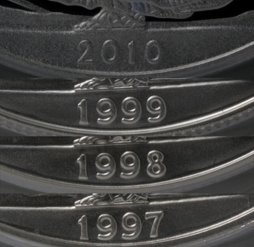 I started building a collection of PR70 silver eagles a couple of months ago, just getting into coins so I'm no expert. The raised part of the proof coins have a burnished finish (sorry, don't know the official term). The 2010 is just extreme, take a look at the photos I took. All coins under the same light, you can see what I mean. (super size photo here) You can see the finish on the 2010 is nothing like any of the others... looks like it was sand blasted! The coin is supposed to be a PCGS PR70, yet I can also see what I could call as obvious marks - I don't see how it can be a 70. (super size photo here) The coin came from an eBay seller, with over 60,000 feedback. I don't know if it is fake or what is going on. You can also see the strange finish on this photo as well. Anyone else think this is unusual?