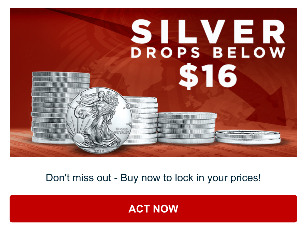 SILVER SPOT PRICE $15.91 $-0.13 Whoops there it is!!!! Don't wait too it will go back up 10 days or so before Xmas, That has been the trend anyways.