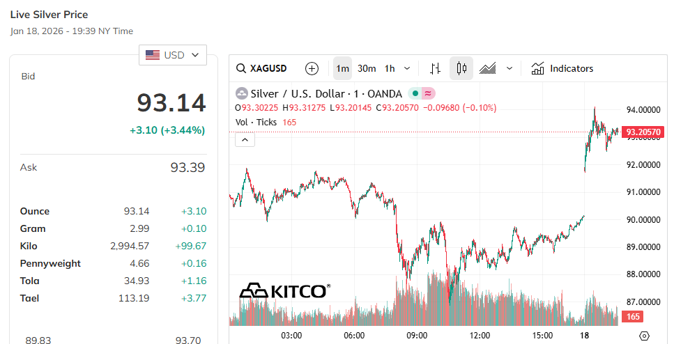 Kitco isn't showing any trades today higher than $94.60 or so. Still. I can't believe we're looking at over three dollars a gram for silver.