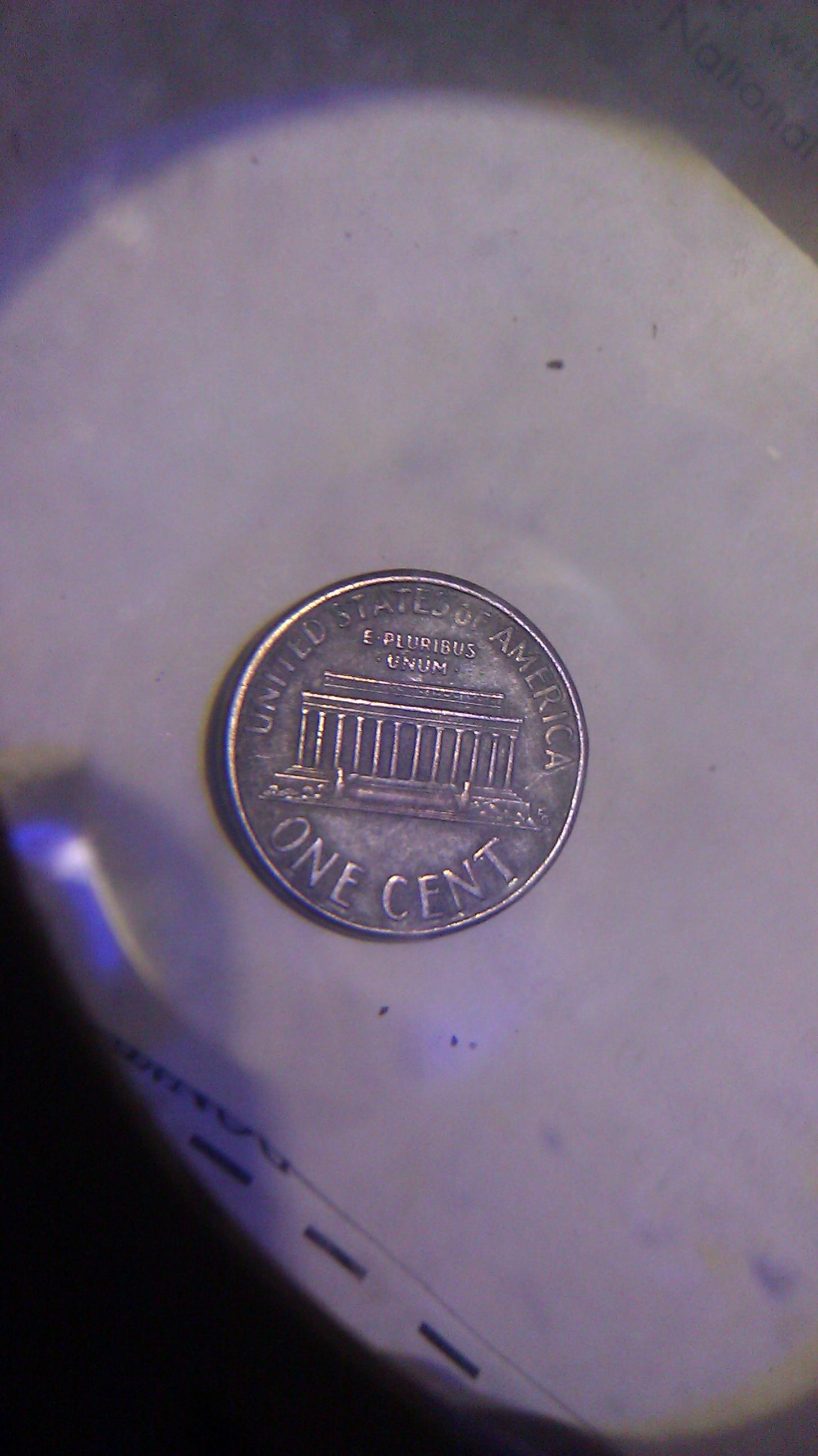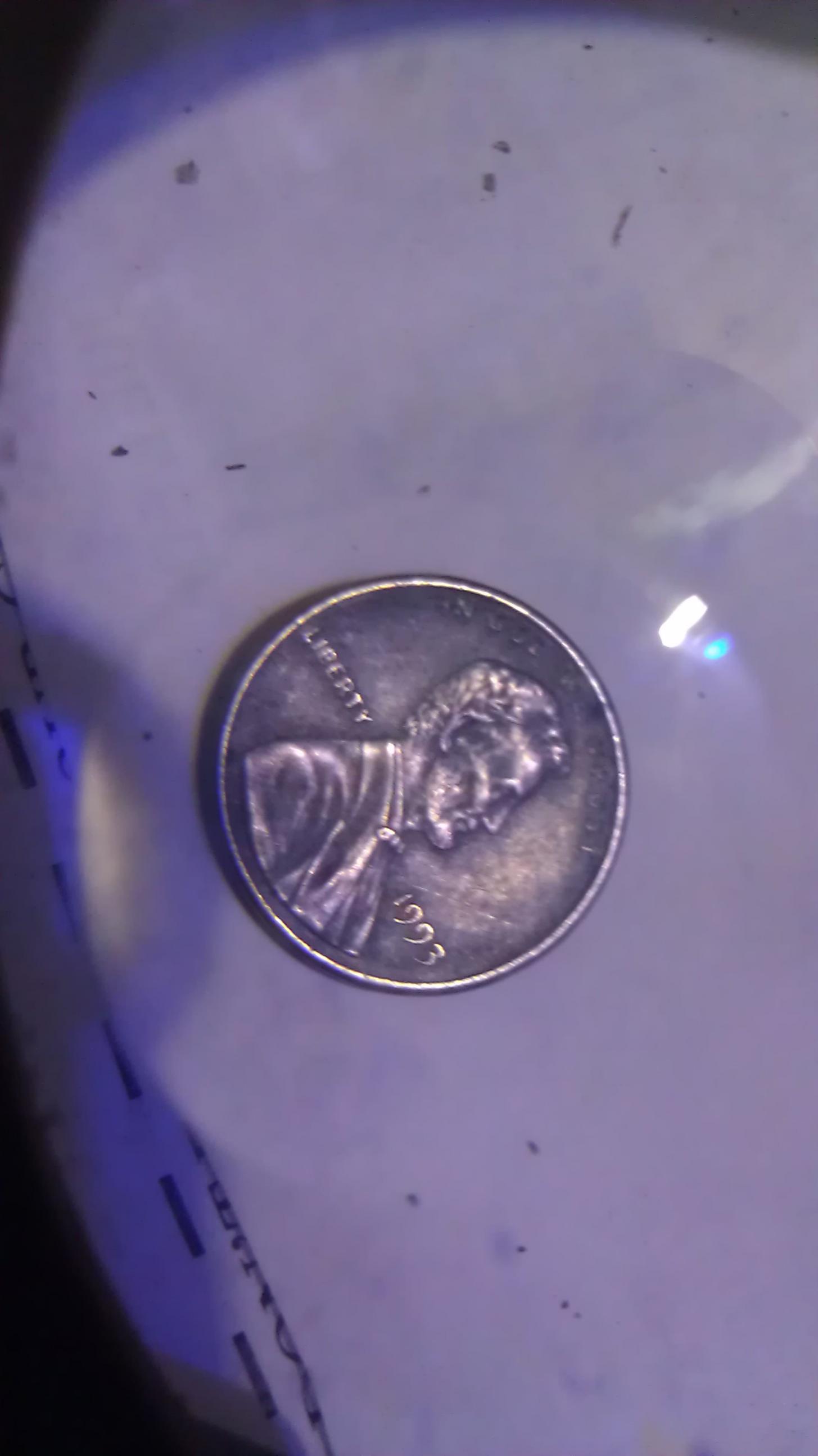our cent coins have been made from zinc with a super thin copper plating since 1983. sometimes they can be found unplated and the zinc looks similar to silver color.