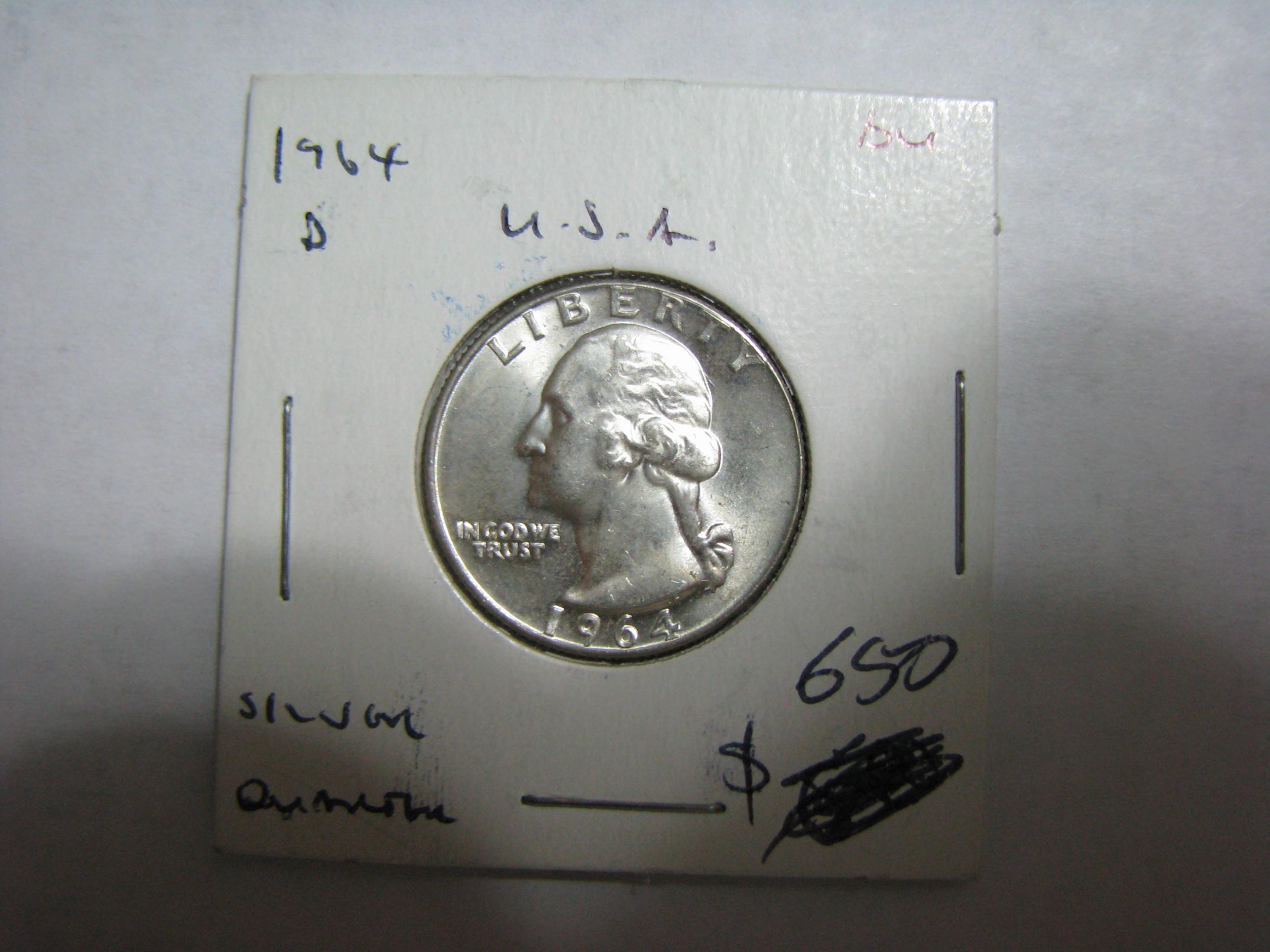 I started getting into collecting when silver was trading around $5/oz, in 2003 or so, I think. One of my first coins was also a 1964 (P or D, not sure) BU quarter. I got it for a dollar then, but silver sure has skyrocketed. They made a zillion quarters that year, but if you're going to have one BU Washington, that's your guy. Cheap, but still pretty.