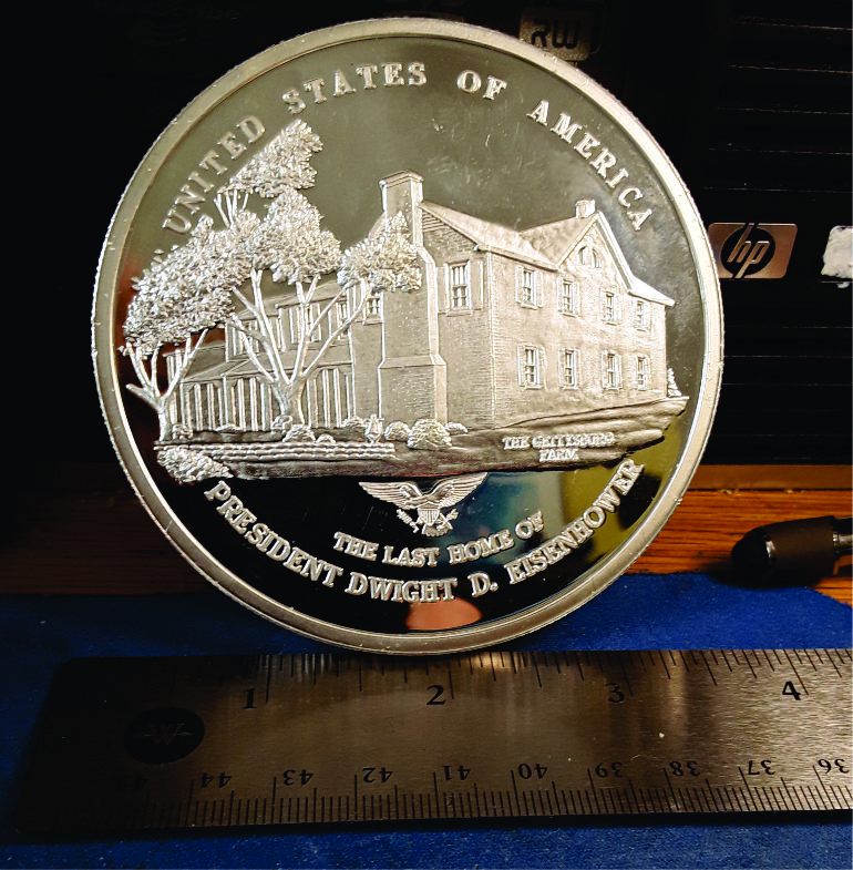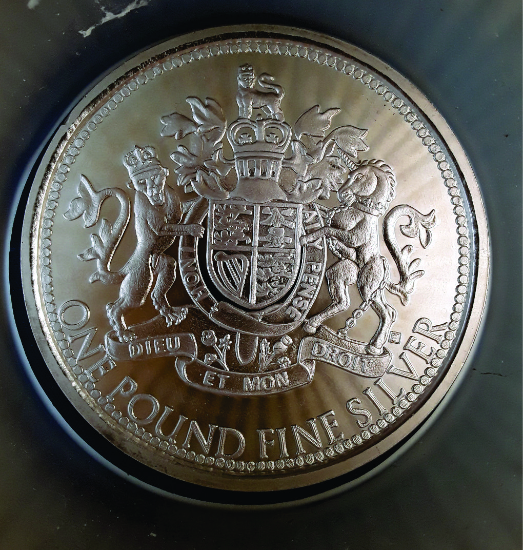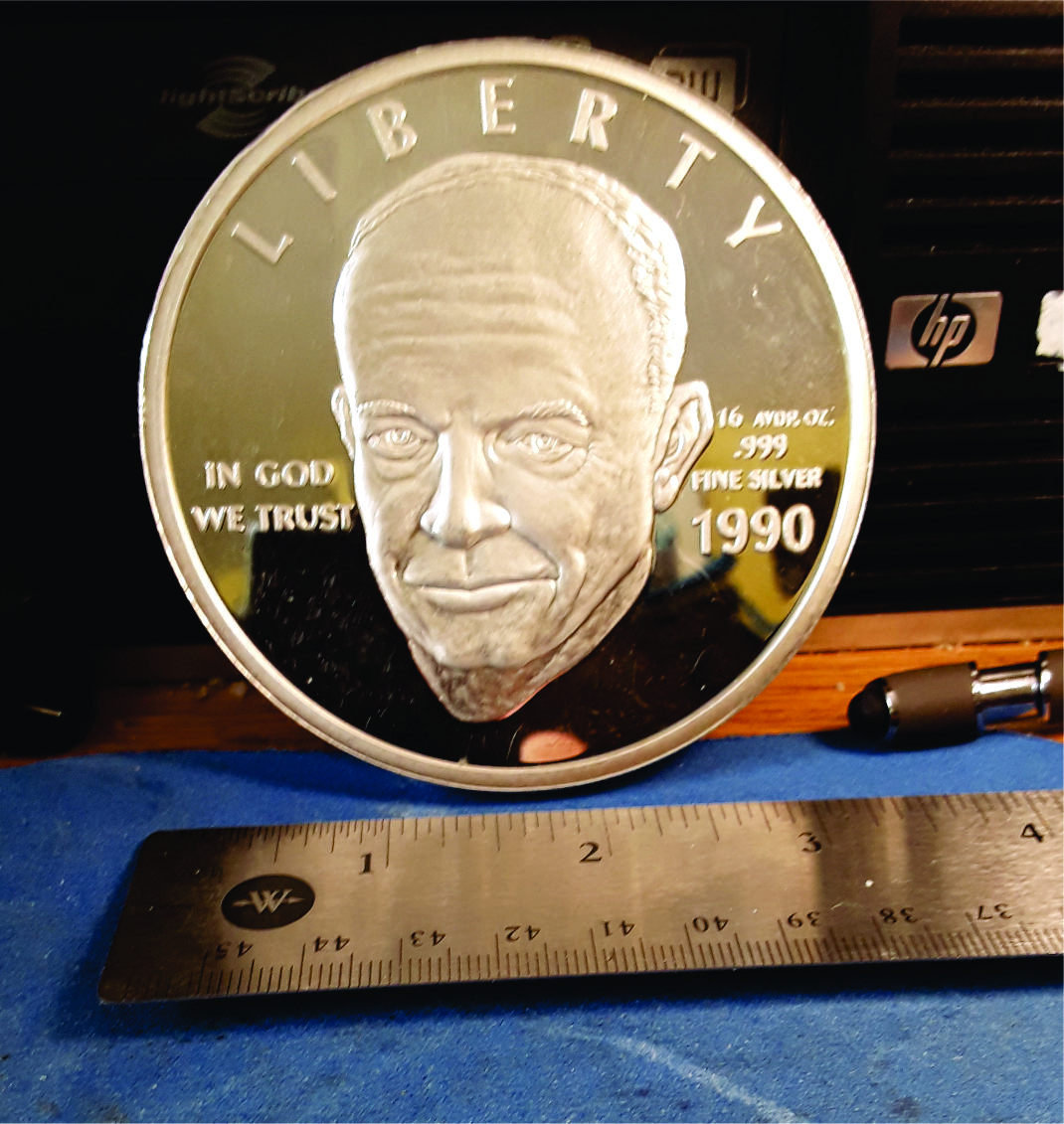 Usually my silver rounds are one ounce. These two are different. The Eisenhower is 16 ounces and the Queen is 13 ounces.