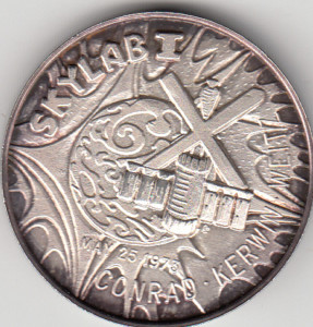 I'm trying to put a value on this Skylab medal. It has reflective surfaces and what appears to be silver toning (not very evident in these pictures): Do you know anything about this medal? What is its composition? What was the mintage? There is no hallmark, and the edge has no inscription.