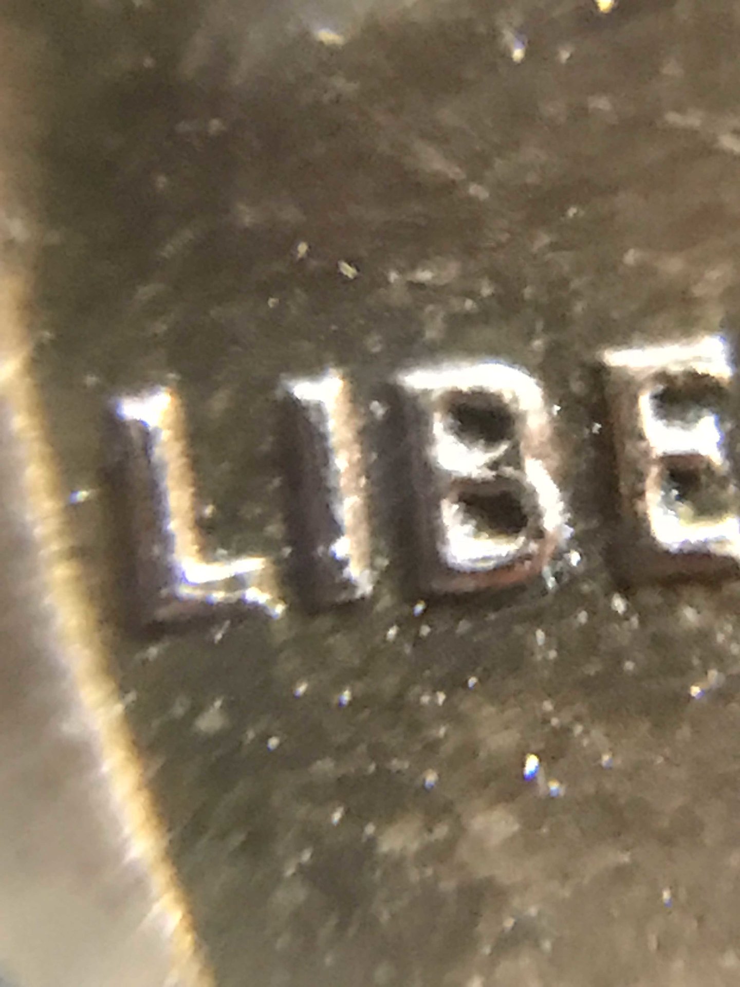 Here's an image of liberty, which John talks about a die scratch runs north from the upper left of the I in LIBERTY. Hell, there's lots of die scratches . Now, here's mine . Very light die scratches .