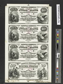 One of the regular questions during this project has been, "When are these scans going to be available to the general public?" At the time the time transcribing was completed I didn't know. And then I got busy doing other things and it kind of fell off the radar. Well, last night I did a little searching on the National Museum of American History website. I'm not sure when it happened, but all the proofs are now publicly viewable online! Just go to the museum's Collections page, then do a search for a state or town followed by "certified proof". If you want some eye candy, try Deadwood or Hawaii. You can also search by bank name and charter number. Wish you could search by denomination, but I haven't figured that one out yet. Happy hunting!
