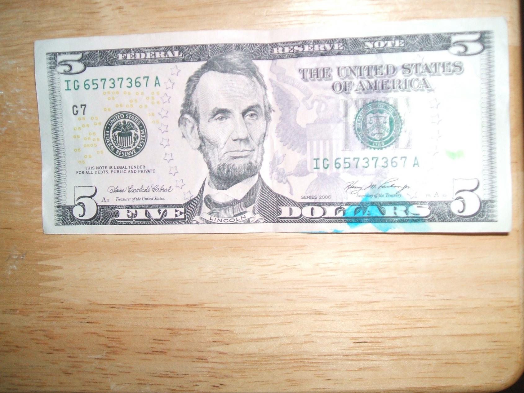 I ran across a five dollar bill that has blue ink smudges near the bottom of the bill. Could this be caused from the making of the bill ?