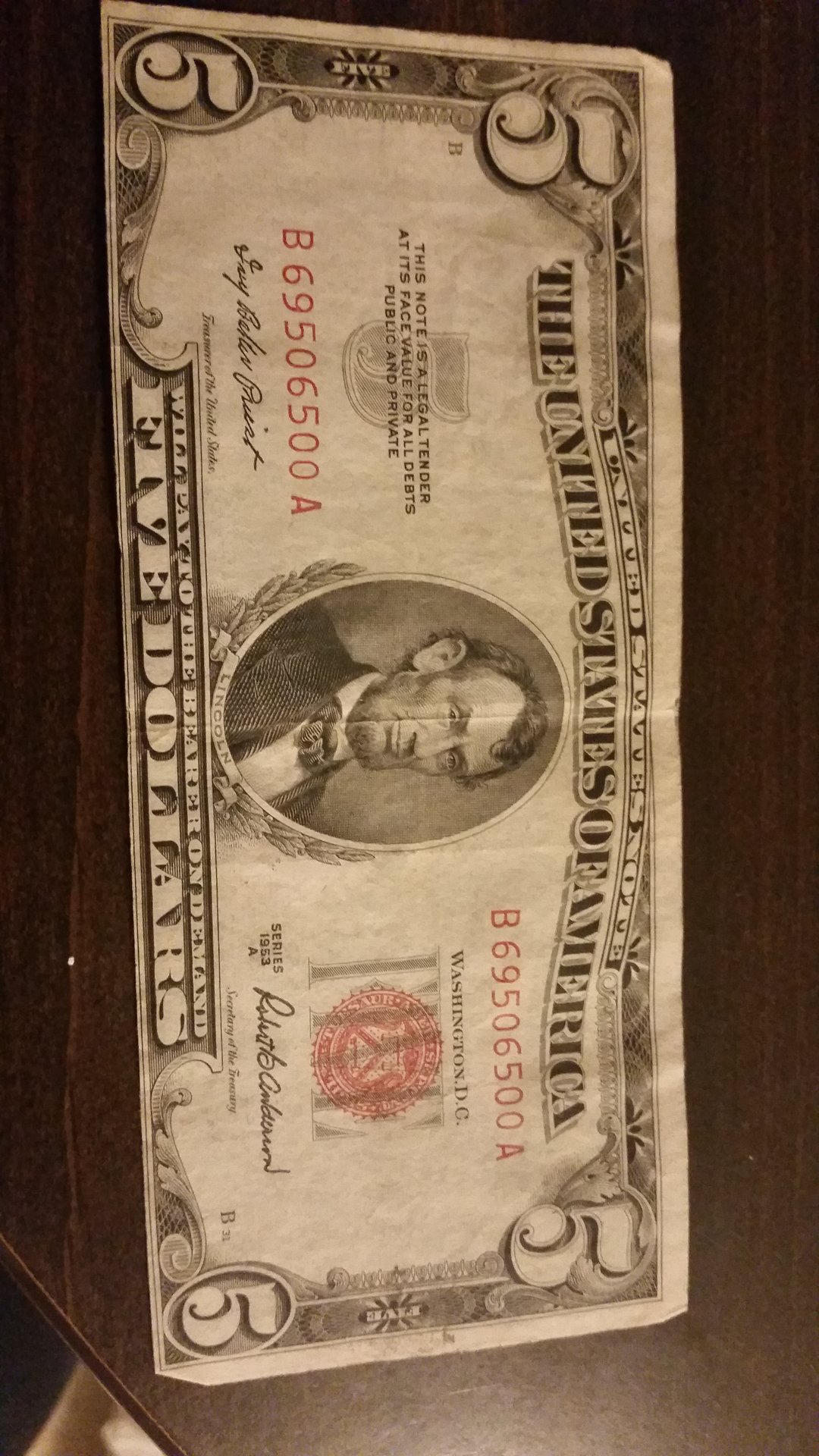 I love collecting $5 bills. I've been trying to get each of the different color seals and varieties. I think your wife did great for a first timer